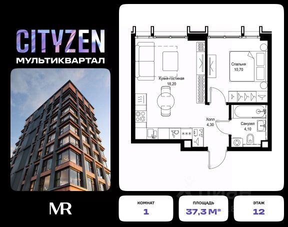 Продается 1-комнатная квартира от застройщика в жилом мультиквартале CITYZEN на 48-м этаже в корпусе #6 урбан-блока VOLNA. Общая площадь лота составляет 43.90 м² В лобби корпуса #6 урбан-блока VOLNA представлены: 1. Medium-лобби с зоной отдыха 2. Зона консьержа 3. Почта 4. Колясочная 5. Лапомойка 6. Лифтовой холл 7. Санузел 8. Помещения уборочного инвентаря CITYZEN — это большой город в миниатюре. Инфраструктура мультиквартала организована по принципу шаговой доступности от подъезда до любой нужной точки: супермаркета, кофейни, салона красоты, фитнес-центра и др. В домах представлены лобби с атмосферой премиального резорта, дизайн которых вдохновлен французскими интерьерами 1960-х годов. Концепция благоустройства территории мультиквартала предусматривает большое количество вечнозеленых растений, что создает ощущение максимальной близости к природе. Жителей квартала ждут места для отдыха, игр, занятий спортом и прогулок с домашними питомцами. В приватном дворе с собственным садом предусмотрена зеленая комьюнити-гостиная для дружеского отдыха и общения, одна из стен которой подходит для кинопроекций, а также зеленый рабочий кабинет в саду (бизнес-гардена), оборудованный wi-fi станцией и usb-разъёмами для зарядки устройств. Маленьких жителей ждут авторские игровые площадки для разных возрастных групп (от 0 до 12 лет). Начало строительства - 1 квартал 2024 года. Окончание строительства - 3 квартал 2027 года.Компания MR предлагает своим клиентам специальные условия приобретения квартир в рамках программ ипотечного кредитования от банков-партнеров.