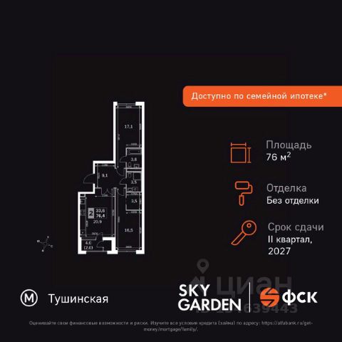 Продается 2-комнатная квартира от застройщика в жилом мультиквартале СИТИДЗЕН на 12-м этаже в корпусе #4. Общая площадь лота составляет 67.60 м² В лобби корпуса #4 представлены: 1. Small-лобби с зоной отдыха 2. Почта 3. Колясочная 4. Лапомойка 5. Лифтовой холл 6. Санузел 7. Помещение уборочного инвентаря СИТИДЗЕН — это большой город в миниатюре. Инфраструктура мультиквартала организована по принципу шаговой доступности от подъезда до любой нужной точки: супермаркета, кофейни, салона красоты, фитнес-центра и др. В домах представлены лобби с атмосферой премиального резорта, дизайн которых вдохновлен французскими интерьерами 1960-х годов. Концепция благоустройства территории мультиквартала предусматривает большое количество вечнозеленых растений, что создает ощущение максимальной близости к природе. Жителей квартала ждут места для отдыха, игр, занятий спортом и прогулок с домашними питомцами. В приватном дворе с собственным садом предусмотрена зеленая комьюнити-гостиная для дружеского отдыха и общения, одна из стен которой подходит для кинопроекций, а также зеленый рабочий кабинет в саду (бизнес-гардена), оборудованный wi-fi станцией и usb-разъёмами для зарядки устройств. Маленьких жителей ждут авторские игровые площадки для разных возрастных групп (от 0 до 12 лет). Начало строительства - 1 квартал 2024 года. Окончание строительства - 3 квартал 2027 года.Компания MR предлагает своим клиентам специальные условия приобретения квартир в рамках программ ипотечного кредитования от банков-партнеров.