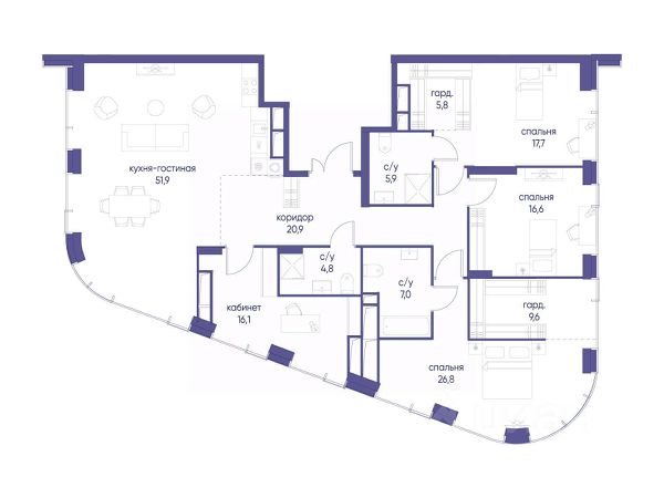 В престижном районе Пресня, на перекрестке делового и исторического центров Москвы, продается четырехкомнатная квартира площадью 164.00 кв. м без отделки. Квартира находится на 11 этаже 11-этажного дома, в новом элитном жилом комплексе "Начало" от девелопера "Донстрой". Реализация проекта запланирована на 1 квартал 2030 года. Начало - футуристический дом на Пресне в нескольких минутах от Сити и Садового кольца. Проект по-настоящему космического масштаба, где есть все, чтобы раскрыть себя и свои возможности. Расположение Пресня - один из самых престижных районов Москвы. Жить здесь - значит стать частью истории столицы, быть в эпицентре деловой активности города и ощущать, как сама Вселенная вращается вокруг вас. - 5 минут пешком до Красногвардейских прудов; - 15 минут пешком до ст. метро "Улица 1905 года"; - 6 минут на автомобиле до Садового кольца и небоскрёбов "Москва-Сити"; - 12 минут на автомобиле до Кремля. Архитектура как путешествие Как росток пробивает скалу, как растет кристалл, как ракета устремляется ввысь - так формируется архитектурный образ этого дома. Точно выверенный баланс между футуристичными формами и функциональным содержанием дома выводит жизнь в нем на новую орбиту. Стеклянные фасады отражают небо и город, превращая здание в зеркало для окружающего ландшафта. Двор между небом и землёй Просторная территория двора с тремя тематическими зонами отдыха: "Млечный путь" - для детских игр и развлечений; "Космический сад" - для тихого отдыха и релакса; "Метеоритный сад" - для любителей спорта. Открытый променад - сквозной маршрут на крыше стилобата с зонами отдыха, занятий спортом, детских игр и совместной работы. Все площадки плавно связаны между собой прогулочной дорожкой. Теплая кольцевая галерея и мосты над пространством двора - все корпуса "стыкуются", точно модули космической станции. Главный центр притяжения В составе проекта возводится собственный комьюнити-центр, где создана идеальная атмосфера для любых начинаний: - Детский клуб для будущих покорителей Вселенной; - Коворкинги для решения задач планетарного и космического масштабов; - Переговорные для судьбоносных и просто важных встреч; - Лаунжи с атмосферой дзена и релакса; - Библиотека для спокойного чтения; - Кинотеатр для классики и блокбастеров. Территория комфорта и приватности Всё нужное рядом: - Современный образовательный центр со школой и детским садом - для ваших детей; - Фитнес-центр с бассейном - для релакса и борьбы со стрессом; - Ресторанная улица: кафе, рестораны, летние террасы - для деловых обедов и семейных ужинов; - Пекарня и минимаркет в доме - для ежедневных покупок; - Сквер у дома - для неспешных прогулок и спокойного отдыха; - Никаких такси на улице. Машина заберет вас прямо в подземном паркинге вашего корпуса.