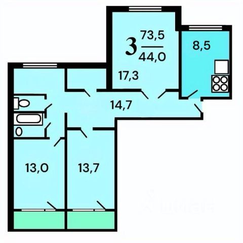 Кухня 6 кв.м, раздельный санузел (туалет 0,9 кв.м и ванная 2,2 кв.м), коридор 5,5 кв.м. Общая площадь квартиры 59,9 кв.м. Квартира в хорошем состоянии, можно заехать и жить.