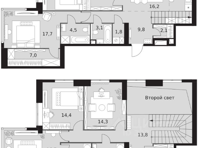 • ✓ В базе Циан 408 квартир на последнем этаже в округе ЮЗАО в Москве