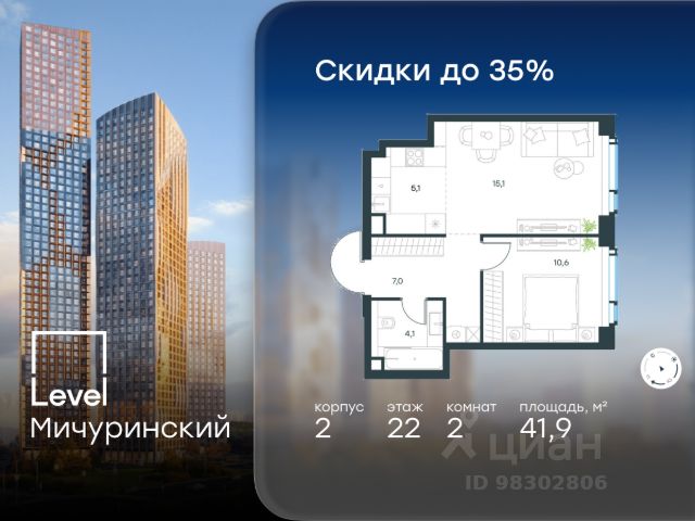 Этаж: 2, комнатность: 3 Площадь: 73.2 кв.м. Продаются апартаменты в многофункциональном комплексе бизнес-класса West Tower в ЗАО. 3 - комнатные апартаменты в West Tower это идеальные апартаменты для индивидуальности. Простор открытой планировки, в сочетании с инфраструктурой комплекса и отличной экологией вокруг дают отличную основу для покорения вершин. Здесь только самое необходимое. Эти апартаменты больше других подобных подходят для зонирования. Можно легко отделить хоум офис от кухни, а пространство для приема гостей от зоны отдыха. West Tower — апартаменты с премиальным сервисом на Аминьевском шоссе. Развитая инфраструктура и хорошая транспортная доступность. Рядом три станции метро: Аминьевская, Давыдково и Мичуринский проспект. У подножия коплекса находится Природный заказника Долина реки Сетунь, который дополнен собственным парком на крыше. Архитектура Строгий, харизматичный стиль проекта West Tower отражает в себе концепцию рационального проектирования и прагматичного подхода. Здесь все продумано до мельчайших деталей. Инфраструктура в доме Торговая галерея Kvartal West расположилась на первых этажах комплекса. Более 150 бутиков, кафе и рестораны, игровые центры, кинотеатр Синема Стар и премиальный фитнес-клуб World Class с бассейном. Комфорт и безопасность Премиальный консьерж-сервис 24/7, круглосуточная охрана, видеонаблюдение, система СКУД, закрытый охраняемый паркинг и эксклюзивное мобильное приложение для решения бытовых вопросов резидентов.