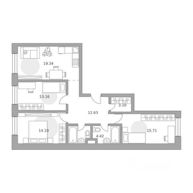 Цена указана с учётом скидки при 100%-й оплате, несубсидированной ипотеке, рассрочке (кроме программы "Рассрочка 0%"). В Басманном районе (ЦАО) продается 2-комнатная квартира площадью 56.70 кв.м без отделки. Квартира расположена на 9 этаже 9-этажного корпуса " A" в жилом комплексе бизнес-класса Левел Бауманская (компания Level Group). Отличная транспортная доступность: - 15 мин. пешком до метро "Бауманская" и "Электрозаводская"; - 4 мин. на авто до ТТК; - 8 мин. на авто до Садового кольца; - 15 мин. на авто до Кремля. Продуманный архитектурный проект: - Архитектура от бюро ARCH(E)TYPE, вдохновленная историей района; - 95% квартир с панорамными видами на набережные, парки и сталинские высотки; - Высокие потолки от 3,02 м до 6,3 м; - Лобби с комфортными лаунж-зонами; - Благоустроенный закрытый двор без машин. Расположение и инфраструктура: Левел Бауманская расположен в престижном Басманном районе (ЦАО). В пешей доступности находится легендарный МГТУ им. Баумана, Британский и Ломоносовский лицеи, а за 10 минут на автомобиле можно доехать до НИУ ВШЭ и других престижных вузов. На территории проекта предусмотрена развитая внутренняя инфраструктура: собственный детский сад и 10 коммерческих помещений на первых этажах домов. Благоустройство: Концепция благоустройства создана в соавторстве с именитым бюро GAFA. На площади 0,35 га расположатся зоны для отдыха, занятий спортом и прогулок. Во дворе для жителей жилого комплекса будет создан коворкинг прямо на свежем воздухе - открытые беседки и Wi-Fi на территории. Атмосферу приватности подчеркнёт обилие растительности - деревья и кустарники займут 50% двора. За счёт большого количества хвойных насаждений территория жилого комплекса будет зелёной круглый год. Инженерия и комфорт: Жители Левел Бауманская не зависят от сезонного отключения горячей воды. Для этого в проекте предусмотрены центральные водонагреватели, обеспечивающие комфорт круглый год. Для безопасности созданы следующие системы контроля доступа: круглосуточное видеонаблюдение всех общественных зон (лобби, двор, лифты, паркинг), вызывные панели у входов на закрытую территорию, видеодомофоны с возможностью управления через мобильное приложение, распознавание автомобильных номеров при въезде/выезде в/из паркинга. По заявке собственнику предоставляется возможность просмотра изображения отдельных видеокамер. Лифты: В жилом комплексе устанавливается лифтовое оборудование Sicher Elevator - одного из ведущих производителей с 20-летним опытом и 40 представительствами по всему миру. Кабины от Sicher Elevator отличаются тихим и плавным ходом, особой износостойкостью и современными технологическими и дизайнерскими решениями. Все лифты имеют прямой доступ в паркинг с жилых этажей. В домах также предусмотрен сервисный лифт. Грузоподъёмность лифтов от 450 до 1000 кг, скорость 1,6 м/с.