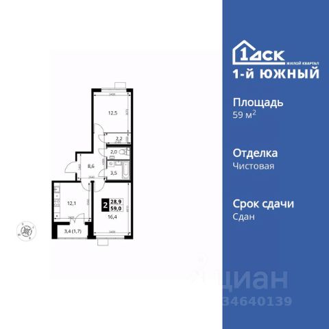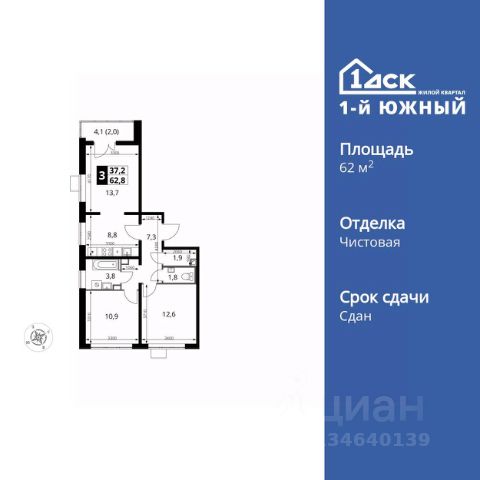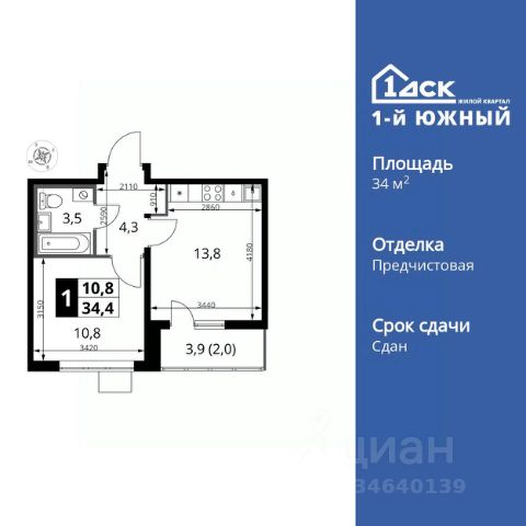 ДОМ ВВЕДЕН В ЭКСПЛУАТАЦИЮ!! (Разрешение на ввод RU50-21-33014-2025 от 26.06.2025) Продается 1-к квартира 34,2 м2 в ЖК "1-й Южный" по переуступке прав требования. Квартира располагается на 12-м этаже из 25 этажей многоквартирного дома. Планировкой предусмотрена просторная кухня-гостиная 13,8 кв м, жилая комната 10,8 кв м, совмещенный санузел, лоджия и коридор с нишей под шкаф. Квартира будет передана с ЧИСТОВОЙ ОТДЕЛКОЙ "белый шоколад". Предусмотрена система Умная квартира для управления светом, розетками и совместимыми бытовыми приборами. - Защита от протечек и возгораний - Экономия ресурсов - Управление через Яндекс.Станцию или приложение. Для жителей ЖК 1-й Южный будут построены: - 2 собственные муниципальные школы: — на 1250 мест — на 1725 мест - 3 детских сада на 330, 500 и 600 мест - Своя поликлиника - Отдельностоящий паркинг на 1996 мест. Комфорт для пешеходов: - Планируется станция МЦД-5 Булатниково - 10-15 мин до метро Домодедовская, Аннино, Кантемировская на общественном транспорте - 30 мин до метро Красногвардейская и Царицыно на общественном транспорте - 7 минут до станций метро Лебедянская и Липецкая новой Бирюлевской линии (открытие в 2027 г.) Удобство для автомобилистов: - 1,8 км до МКАД - 5,3 км до Каширского шоссе - 8,2 км до Варшавского шоссе - 1 км до выезда на трассу М4-Дон