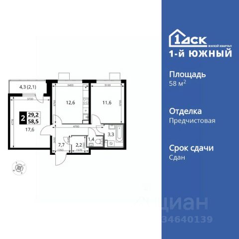 ДОПОЛНИТЕЛЬНАЯ СКИДКА ДО 10% В ОФИСЕ ПРОДАЖ! Прямая продажа от застройщика! Жилой Комплекс класса Комфорт Плюс. Продаётся 2-к квартира номер 114 общей площадью 58.3 кв.м. на 6-м этаже 25 этажного здания. Отделка Whitebox. Цена с учётом скидки. Особенности квартиры: - МЦД-5 в пешей доступности - Квартал с южным садом - Свои 3 детских сада и 2 большие школы - Просторная спальня, в которой можно разместить большую кровать. - Линейная планировка - максимальная функциональность и удобство. - Гостевой санузел - комфорт и удобство для ваших гостей. - Раздельный санузел - больше удобства для всех членов семьи. - Просторная кухня - место для семейных ужинов и кулинарных экспериментов. - Просторная мягкая зона - комфорт и уют для отдыха всей семьи. - Возможность добавить спальное место - дополнительный комфорт для гостей. - Гардеробная - удобство для хранения и организации вещей. - Просторная лоджия - идеальное место для уютных вечеров. Квартира с предчистовой отделкой (White box). Вам не придется заниматься черновыми и трудоёмкими работы, а чистовую отделку и дизайн - сделайте на свой вкус. Информация о комплексе: Одно из преимуществ проектов 1- ДСК большие застекленные лоджии. Другое преимущество честный евро-формат. Во всем проекте предусмотрена система Умный дом. В состав устанавливаемого пакета устройств входит: WiFi реле для управления группами потребителей, беспроводной кран перекрытия с эл. приводом, беспроводной сенсор протечки, Яндекс Станция Мини. Его расположение можно назвать удачным за счет транспортной доступности и близости к природным объектам. По соседству лес, а в каждом дворе плодовые деревья. Весной квартал окутывает бело-розовое облако: это цветут яблони, груши, сливы. К августу в воздух наполняется ароматом созревших плодов. Зимой среди покрытых инеем деревьев протянулась лыжня. Транспортная доступность: - Общественный транспорт: Действующая ж/д станция Булатниково (в перспективе будущая МДЦ D5) в пешей доступности, всего 10-12 минут. - Личный автотранспорт: Удобный выезд на трассу М4-Дон в сторону Москвы и области 850 м, до МКАД - 1 км Внутренняя инфраструктура: Красивые продуманные подъезды - еще одно преимущество проекта 1-й Южный. Вход в сквозные подъезды есть и с улицы, и со двора. Благодаря сплошному остеклению в них всегда светло и уютно. Подъезды расположены на уровне земли, поэтому и молодым родителям с коляской, и жильцам с ограниченными возможностями вход и выход неудобств не доставят. В помещении предусмотрено место под стойку ресепшен с выводом инженерных сетей. Если жильцы решат на общем собрании, что необходим охранник или консьерж, организовать для них рабочее место можно быстро и с минимальными затратами. В подъездах предусмотрены уборные для детей и взрослых. Колясочные в каждом подъезде позволяют поддерживать порядок и чистоту на этажах. На случай прогулки с четвероногим питомцем в непогоду в подъездах устроены лапомойки. Во дворах и на общественных территориях 1-ого Ю