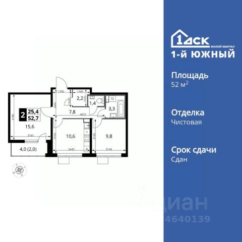 ДОПОЛНИТЕЛЬНАЯ СКИДКА ДО 10% В ОФИСЕ ПРОДАЖ! Прямая продажа от застройщика! Жилой Комплекс класса Комфорт Плюс. Продаётся 2-к квартира номер 465 общей площадью 52.7 кв.м. на 20-м этаже 24 этажного здания. Чистовая отделка. Цена с учётом скидки. Особенности квартиры: - МЦД-5 в пешей доступности - Квартал с южным садом - Свои 3 детских сада и 2 большие школы - Просторная спальня, в которой можно разместить большую кровать. - Линейная планировка - максимальная функциональность и удобство. - Гостевой санузел - комфорт и удобство для ваших гостей. - Раздельный санузел - больше удобства для всех членов семьи. - Просторная мягкая зона - комфорт и уют для отдыха всей семьи. - Возможность добавить спальное место - дополнительный комфорт для гостей. - Гардеробная - удобство для хранения и организации вещей. - Просторная лоджия - идеальное место для уютных вечеров. Информация о комплексе: Одно из преимуществ проектов 1- ДСК большие застекленные лоджии. Другое преимущество честный евро-формат. Во всем проекте предусмотрена система Умный дом. В состав устанавливаемого пакета устройств входит: WiFi реле для управления группами потребителей, беспроводной кран перекрытия с эл. приводом, беспроводной сенсор протечки, Яндекс Станция Мини. Его расположение можно назвать удачным за счет транспортной доступности и близости к природным объектам. По соседству лес, а в каждом дворе плодовые деревья. Весной квартал окутывает бело-розовое облако: это цветут яблони, груши, сливы. К августу в воздух наполняется ароматом созревших плодов. Зимой среди покрытых инеем деревьев протянулась лыжня. Транспортная доступность: - Общественный транспорт: Действующая ж/д станция Булатниково (в перспективе будущая МДЦ D5) в пешей доступности, всего 10-12 минут. - Личный автотранспорт: Удобный выезд на трассу М4-Дон в сторону Москвы и области 850 м, до МКАД - 1 км Внутренняя инфраструктура: Красивые продуманные подъезды - еще одно преимущество проекта 1-й Южный. Вход в сквозные подъезды есть и с улицы, и со двора. Благодаря сплошному остеклению в них всегда светло и уютно. Подъезды расположены на уровне земли, поэтому и молодым родителям с коляской, и жильцам с ограниченными возможностями вход и выход неудобств не доставят. В помещении предусмотрено место под стойку ресепшен с выводом инженерных сетей. Если жильцы решат на общем собрании, что необходим охранник или консьерж, организовать для них рабочее место можно быстро и с минимальными затратами. В подъездах предусмотрены уборные для детей и взрослых. Колясочные в каждом подъезде позволяют поддерживать порядок и чистоту на этажах. На случай прогулки с четвероногим питомцем в непогоду в подъездах устроены лапомойки. Во дворах и на общественных территориях 1-ого Южного столько всего интересного для юных обитателей. Собственные 3 детских сада и 2 больших школы буквально под окнами Изюминка проекта - пешеходный бульвар-дендрарий, он идеален для семейных прогулок. По сторонам прогулочной зоны разм