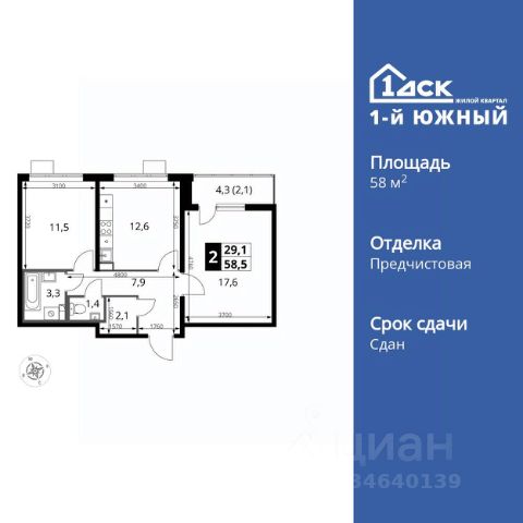 ДОПОЛНИТЕЛЬНАЯ СКИДКА ДО 10% В ОФИСЕ ПРОДАЖ! Прямая продажа от застройщика! Жилой Комплекс класса Комфорт Плюс. Продаётся 2-к квартира номер 138 общей площадью 58.4 кв.м. на 9-м этаже 24 этажного здания. Отделка Whitebox. Цена с учётом скидки. Особенности квартиры: - МЦД-5 в пешей доступности - Квартал с южным садом - Свои 3 детских сада и 2 большие школы - Просторная спальня, в которой можно разместить большую кровать. - Линейная планировка - максимальная функциональность и удобство. - Гостевой санузел - комфорт и удобство для ваших гостей. - Раздельный санузел - больше удобства для всех членов семьи. - Просторная кухня - место для семейных ужинов и кулинарных экспериментов. - Просторная мягкая зона - комфорт и уют для отдыха всей семьи. - Возможность добавить спальное место - дополнительный комфорт для гостей. - Гардеробная - удобство для хранения и организации вещей. - Просторная лоджия - идеальное место для уютных вечеров. Квартира с предчистовой отделкой (White box). Вам не придется заниматься черновыми и трудоёмкими работы, а чистовую отделку и дизайн - сделайте на свой вкус. Информация о комплексе: Одно из преимуществ проектов 1- ДСК большие застекленные лоджии. Другое преимущество честный евро-формат. Во всем проекте предусмотрена система Умный дом. В состав устанавливаемого пакета устройств входит: WiFi реле для управления группами потребителей, беспроводной кран перекрытия с эл. приводом, беспроводной сенсор протечки, Яндекс Станция Мини. Его расположение можно назвать удачным за счет транспортной доступности и близости к природным объектам. По соседству лес, а в каждом дворе плодовые деревья. Весной квартал окутывает бело-розовое облако: это цветут яблони, груши, сливы. К августу в воздух наполняется ароматом созревших плодов. Зимой среди покрытых инеем деревьев протянулась лыжня. Транспортная доступность: - Общественный транспорт: Действующая ж/д станция Булатниково (в перспективе будущая МДЦ D5) в пешей доступности, всего 10-12 минут. - Личный автотранспорт: Удобный выезд на трассу М4-Дон в сторону Москвы и области 850 м, до МКАД - 1 км Внутренняя инфраструктура: Красивые продуманные подъезды - еще одно преимущество проекта 1-й Южный. Вход в сквозные подъезды есть и с улицы, и со двора. Благодаря сплошному остеклению в них всегда светло и уютно. Подъезды расположены на уровне земли, поэтому и молодым родителям с коляской, и жильцам с ограниченными возможностями вход и выход неудобств не доставят. В помещении предусмотрено место под стойку ресепшен с выводом инженерных сетей. Если жильцы решат на общем собрании, что необходим охранник или консьерж, организовать для них рабочее место можно быстро и с минимальными затратами. В подъездах предусмотрены уборные для детей и взрослых. Колясочные в каждом подъезде позволяют поддерживать порядок и чистоту на этажах. На случай прогулки с четвероногим питомцем в непогоду в подъездах устроены лапомойки. Во дворах и на общественных территориях 1-ого Ю