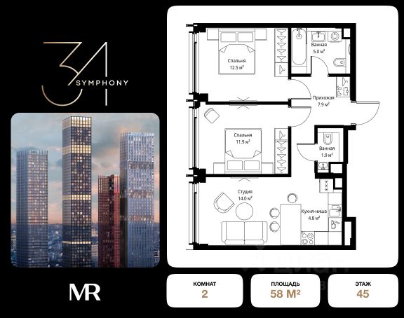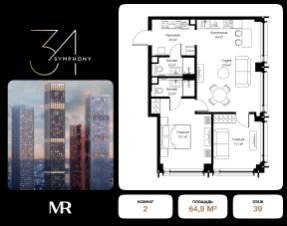 Дом сдан. Ключи в день покупки! В продаже 1-комнатная квартира площадью 41 м² с предчистовой отделкой на 10 этаже 49 этажного дома в корпусе Кристал. ЖК Симфония 34 - концептуально новый жилой комплекс премиум-класса с подземной парковкой, состоит из четырех башен высотой 36 - 54 этажа. Квартиры сдаются с базовой (предчистовой) отделкой MR BASE или дизайнерской чистовой отделкой MR READY. Высота потолков 3 - 6 метров, окна высотой до 2,6 м. Более 100 кладовых в подземной части ЖК и более 500 на этажах. Безопасность - Система контроля входа на территорию комплекса, биометрия - Система автоматического водяного пожаротушения и противопожарного водопровода, система пожарной вентиляции - Доступ на парковку при помощи системы распознавания автомобильных номеров, карточка для контроля доступа резидентов - Система видеонаблюдения - Круглосуточная связь через приложение, телефон, голосовые сообщения с охраной, консьержем, call-центр. Расположение Пешком - 6 минут до метро "Дмитровская" - 15 минут до Тимирязевского парка На машине - 5 минут до Савеловского вокзала и Аэроэкспресса в Шереметьево - 10 минут до Москва-Сити и Садового кольца Благоустройство - 70% территории отведены под зеленые насаждения и ландшафтный дизайн - Приватный Японский сад - Детские площадки с зонированием по возрасту - Clubhouse для резидентов - Wellness & SPA - Зона для пикника, зона с гамаками - Центральное лобби, ресторан, коммерческие помещения - Дополнительный вход/выход на территорию комплекса Окружение - В 10 минутах от Symphony 34 находится дизайн-завод Flacon, где регулярно проходят культурно-образовательные и развлекательные мероприятия - Тимирязевский парк расположен в 850 м. Площадь парка 232 га - Рядом расположен парк "Дубки", площадью 16,5 га. - В 15 минутах расположен Хлебозавод 9. Здесь находятся шоурумы брендов, кафе разных кухонь мира, образовательные проекты и площадки для мероприятиКомпания MR предлагает своим клиентам специальные условия приобретения квартир в рамках программ ипотечного кредитования от банков-партнеров. квартира в готовой новостройке рядом с метро Дмитровская.