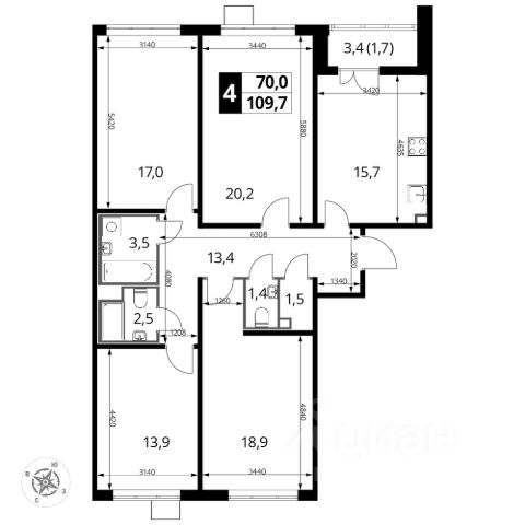 233 840 ₽/м²