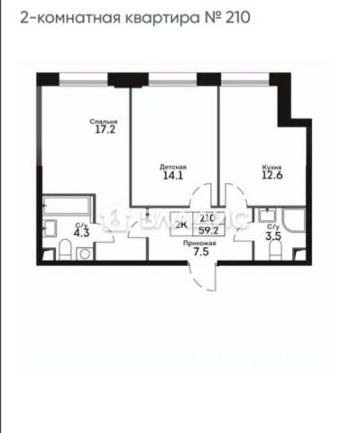 2-комн. квартира в ЖК "Ever" на 4 этаже в 34 этажном здании Корпус 5. Общая площадь: 55.4 кв.м., жилая: 29.5 кв.м. Высота потолков 3.00 м.