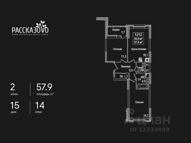 Продается 2-комнатная квартира в ЖК Рассказово на 11 этаже. Общая площадь квартиры составляет 56 кв.м. Квартира без отделки. Уникальность комплекса в его архитектуре все дома построены в стиле Москвы 30-х годов, создавая неповторимое ощущение присутствия романтики того времени. Роскошные входные группы, отделанные мрамором, с высотой потолков 4,5 м, белыми лепными карнизами и стойкой ресепшн с авторской отделкой создают атмосферу уюта, полностью отражая дух и воплощение уникальной архитектурной концепции 30-40 годов, являясь ее логическим продолжением. Преимущество локации заключается в благоприятной экологической обстановке с трех сторон комплекс окружен Ульяновским лесопарком и отсутствием промышленных предприятий, обеспечивая жителей чистым воздухом. До ближайшей станции метро "Рассказовка" всего 850 метров, а до центра можно доехать за 30 минут. Проект предполагает комплексное освоение территории, создание комфортной жилой застройки с развитой качественной инфраструктурой: - большое количество парковочных мест предусмотрены как закрытые подземные паркинги, так и крытые наземные парковки с дополнительно выделенными открытыми парковочными местами возле домов; - круглосуточно охраняемая территория, закрытая от посторонних для безопасности каждого жителя; - двор-парк без машин, где можно не переживать за играющих детей; - социальные объекты: своя поликлиника, детские сады и школы; - здоровая среда: воркаут - площадки, обустроенные места для занятий спортом на свежем воздухе, живописные места для утренних пробежек, велосипедные маршруты любой сложности; - благоустроенная набережная лесного озера для тихих прогулок или семейного отдыха; - коммерческие объекты действующие магазины, кафе и салоны красоты. Узнайте больше о комплексе приезжайте на просмотр, записавшись по телефону. Менеджер вас встретит, угостит вкусным кофе, проведет по территории и покажет квартиру.