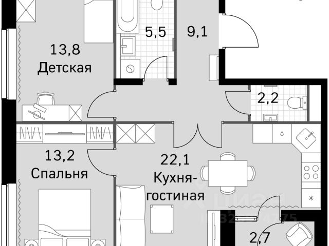 Продаётся Пентхаус 135 м². В жилом районе ALIA на 25-м этаже 25-этажного дома. Жилой район ALIA — это дома бизнес-класса у слияния Москвы-реки и Сходни. ALIA находится в Покровском-Стрешневе, экологически чистом районе на престижном северо-западе столицы. Район возводится на бывшей территории Тушинского аэрополя, где никогда не было промышленного производства. ALIA — это район разностороннего развития, спроектированный по принципу WORK.LIVE.PLAY.LEARN. Это "15-минутный город", где вся необходимая для комфортной жизни инфраструктура — на расстоянии приятной прогулки. У района удобное расположение: отсюда меньше 10 минут пешком до станций метро "Спартак" и "Тушинская" и всего полчаса на автомобиле до центра города или аэропорта Шереметьево. Архитектурную концепцию ALIA разработало бюро SOM (Skidmore, Owings & Merrill), авторы знаменитой "Бурдж-Халифа". В ALIA больше 140 планировочных решений, среди которых — редкие для Москвы форматы: квартиры с окном в ванной, пентхаус, сити-юниты и таунхаусы. Почти половина территории района отдана под благоустройство. В ALIA три парка: Линейный парк с кафе и магазинами, Центральный парк с амфитеатром, сухим фонтаном и большим плейхабом для детей всех возрастов и Прибрежный парк на собственной набережной, одной из самых длинных в Москве. В каждом урбан-блоке — закрытый внутренний двор с гипоаллергенными растениями и детской площадкой. В лобби каждого жилого корпуса в ALIA оборудована зона ожидания, колясочная, гостевой санузел и лапомойка для домашних животных. За стойкой ресепшена резидентов и их гостей встречает консьерж. Центральное лобби урбан-блока — это стильное общественное пространство с коворкингом, лаундж-зоной и кофе-пойнтом. Это "вторая гостиная" жителей урбан-блока и одно из мест, где формируется комьюнити ALIA. Два ключевых объекта инфраструктуры в ALIA — это спорткомплекс "Чкалов Арена", где представлены 25 видов спорта, и самый большой в стране бизнес-парк класса A, благодаря которому району обеспечено быстрое развитие.