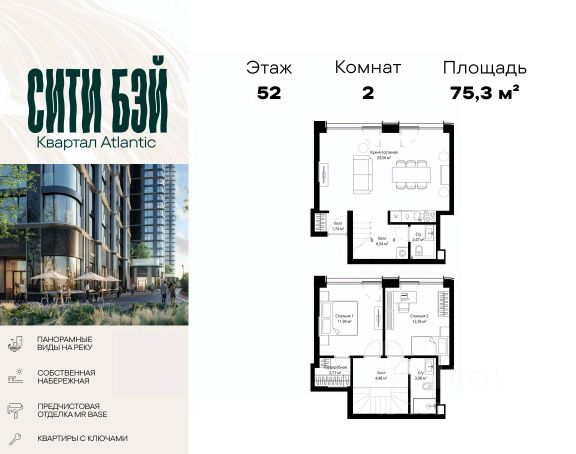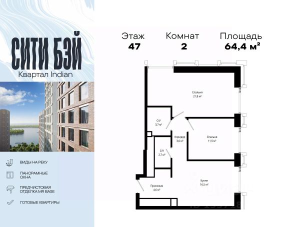 Прямая продажа от застройщика. Продаётся 2-комнатная квартира общей площадью 52.40 м² с предчистовой отделкой в ЖК Сити Бэй на 29-м этаже 53 этажного дома. Концепция жилого комплекса Сити Бэй - настоящий город в городе с отлично развитой инфраструктурой и собственной благоустроенной набережной. На территории жилого комплекса расположено пять кварталов - Atlantic, Pacific, Indian, North, Cliff. Жилой квартал Сити Бэй отличается оригинальной концепцией и выделяется среди других проектов такими характеристиками как: - Архитектура, - Виды из окон, - Природное окружение, вызывая гордость у жителей и восхищение у прохожих. Вся жизнь района Покровское-Стрешнево строится вокруг водных объектов: - Пойма реки Сходни с уникальной экосистемой, - Речка Химка и Химкинское водохранилище, - Москва-река, - Канал имени Москвы. Кругом вода, и местные с удовольствием этим пользуются. А сразу за рекой - центр водного спорта в Строгино с вейк-парком и яхт-клубами. Помимо воды, здесь очень много зелени: - Рядом Сходненский ковш памятник природы, естественный амфитеатр глубиной 40 метров; - Парк при усадьбе Братцево с фруктовым садом; - Дубовая роща "Маяк", - Алешкинский лес; - Лесопарк Покровское-Стрешнево с пляжами и бобрами. Главные транспортные артерии района: - Волоколамское шоссе, - Таганско-Краснопресненская линия метро и МЦД-2. Всего за 20 минут можно добраться до центра на машине или метро, а МЦД связывает ЖК Сити Бэй с северными, восточными и юго-восточными районами. Компания MR предлагает своим клиентам специальные условия приобретения квартир в рамках программ ипотечного кредитования от банков-партнеров. квартира в готовой новостройке в районе Покровское-Стрешнево в Москве.