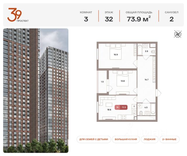Номер лота: 320 Продается трехкомнатная квартира в ЖК "Проспект 39" по адресу Москва, ЮВАО, Рязанский проспект, вл. 39, к. 1. Общая площадь квартиры - 79,00 кв.м., этаж 28. Стоимость квартиры - 26 687 821 р. Продаётся без отделки. Жилой комплекс состоит из пяти монолитных башен высотой 32 этажа. В архитектуре проекта используются приемы и материалы, отражающие стиль индустриализации, характерный для данной локации. Фасады оформлены с помощью плитки, имитирующей красный состаренный кирпич, и металлических элементов дымчато-чёрного оттенка. Верх башен выполнен из композитных зеркальных панелей. Ключевые преимущества: - Дом класса комфорт-плюс - Входные группы дополнены зоной ожидания - Развитая коммерческая инфраструктура - Закрытый минималистичный двор - Охрана и видеонаблюдение территории 24/7 - Хорошая транспортная доступность позволяет быстро добраться до центральной части столицы Внутренняя отделка: - Урбанизм и современный минимализм - Трендовый стиль лофт, аскетичные и элегантные линии - Точечные светильники и стильный индивидуальный номер у каждой квартиры - Тёплая входная группа, декорированная гипсовыми 3D-панелями с подсветкой - Светлый пол из венецианского керамогранита в стиле "тераццо" и потолки типа грильято - Стены выполнены из итальянского керамогранитного слэба Расположение: - 3 минуты до станции метро "Стахановская" - 25 минут до станций метро "Выхино" и "Рязанский проспект" - Удобный выезд на Рязанский проспект Инфраструктура: Первый этаж жилого комплекса отведен под коммерцию, здесь будет всё, что сделает жизнь в комплексе удобной: аптеки, магазины, салоны красоты. Рядом с комплексом находится торгово-развлекательный центр "Город". В ТРЦ доступны: семейный и строительный гипермаркеты, фудкорт, рестораны, детский развлекательный парк, магазины одежды и обуви, аптеки, ювелирные салоны, оптики, студии красоты, химчистка, отделения банков. Зелёный оазис в городе: В 15 минутах ходьбы от жилого комплекса расположена большая зелёная зона - Кусковский лесопарк. Комплекс находится рядом с музеем-заповедником, усыпанным 7 прудами. На территории лесопарка расположились усадьбы, музеи, храмы, имеющие историческую ценность для всего района. Узнать больше о комплексе можно позвонив по телефону офиса продаж или посетив офис продаж лично. Купить квартиру в готовой новостройке на проспекте Рязанский в Москве.