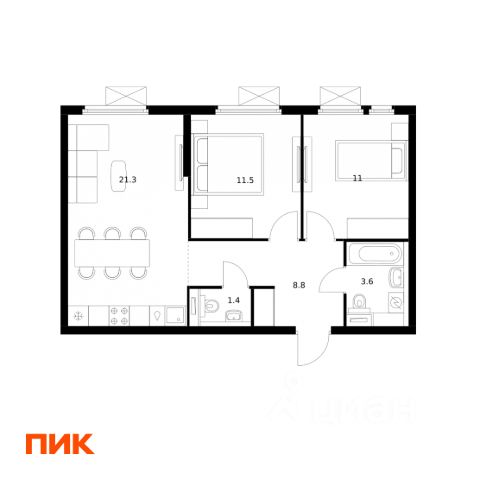 • ✅ Минимальная площадь: 33,5 м²