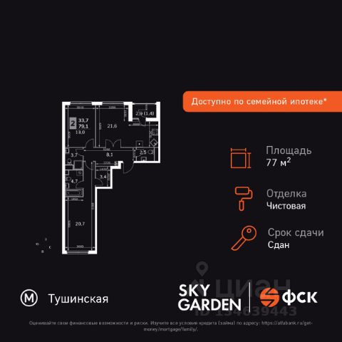 Прямая продажа от застройщика! Жилой Комплекс бизнес-класса. Продаётся 3-к квартира номер 554 общей площадью 81 кв.м. на 14-м этаже 30 этажного здания. Чистовая отделка. Цена с учётом скидки. Особенности квартиры: - Организуем показ в удобное для вас время! - Мастер-зона с гардеробной. Просторное место для отдыха и удобного хранения вещей. - Мастер-зона с санузлом и гардеробной. Всё для вашего комфорта и удобства, включая личный санузел и гардероб. - Просторная спальня, в которой можно разместить большую кровать. - Распашная планировка - отличное сочетание удобства и свободы. - Панорамное окно (1 и более) - раскрывает просторы вашего дома. - Душ помимо ванной - дополнительное удобство для вашей семьи. - Гибкая планировка - создайте пространство по своему вкусу. - Можно оборудовать 2 или более рабочих места - пространство для нескольких человек. - Можно оборудовать рабочее место - комфорт для работы и учёбы. - Можно сделать распашные двери - удобный доступ и стильный акцент. - Просторная кухня - место для семейных ужинов и кулинарных экспериментов. - Гардеробная - удобство для хранения и организации вещей. - Кладовая при кухне - место для хранения и порядка на кухне. - Лоджия - уютное место для отдыха и тишины. Квартира с чистовой отделкой. Раскройте свою индивидуальность в создании своего уникального проекта, а трудоемкий ремонт мы возьмем на себя! Вы идете в ногу со временем и предпочитаете современные, универсальные дизайнерские решения? Или вы любитель строгой лаконичной классики? Тогда наши интерьеры придутся вам по душе! Выбирайте то, что ближе лично Вам и реализуйте свои задумки вместе с нами! Информация о комплексе: ЖК "Скай Гарден" в Покровском-Стрешнево: гармония природы и мегаполиса. Живите среди зелени одноимённого парка, рек и каналов с чистым воздухом, сохраняя все преимущества городской инфраструктуры. Идеальный баланс для тех, кто ценит природу без компромиссов в комфорте. Транспортная доступность: Всего в 12 минутах пешком до м. Тушинская и 15 минутах до станции Тушинская МЦД. На автомобиле: 2 км до Волоколамского шоссе, 2,5 км до МКАД и 15 км до Садового кольца Внутренняя инфраструктура: К вашим услугам игровые площадки для детей с горками и фонтанами. Йога на газоне, воркаут, велопарковки. На территории: поликлиника, аптека, супермаркет, зоны отдыха. Игровая комната в лобби, хранилище для велосипедов в подъездах. Рядом: кафе, пекарня, мастерские, секции. Парк 3,5 га с набережной для прогулок. Всё для жизни и спорта в шаговой доступности. Квартира с чистовой отделкой: ваш стиль без ремонта. Выбирайте современный дизайн или классику - мы воплотим ваши идеи. Готовые интерьеры для уникального дома.