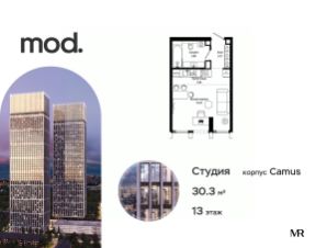 Прямая продажа от застройщика. Продается 1-комнатная квартира общей площадью 41.30 м² с предчистовой отделкой в ЖК премиум-класса Mod на 14-м этаже 44 этажного дома. Mod - жилой комплекс премиум-класса в историческом районе Москвы Марьина Роща. Пятый корпус станет частью единого высотного ансамбля, который поднимается над столицей и очерчивает новый горизонт города. Расположение корпуса Mod.C отличается тем, что виды на юго-запад Москвы не ограничены существующей застройкой. Почти все главные доминанты столицы — как на ладони: от сталинских высоток до небоскрёбов делового центра. Любоваться достопримечательностями будет вдвойне приятнее через панорамные окна. Закрытая территория жилого комплекса, продуманное благоустройство, эксплуатируемые кровли стилобата, образовательный центр с детским садом создают приватное пространство для тихой семейной жизни, а городская площадь с фонтанами, ресторан, супермаркет, коммерческая инфраструктура на первых этажах привносят созвучную с ритмом города динамику. Преимущества проекта: - В шаговой доступности новый деловой кластер Москвы - Выразительная авторская архитектура - Единственные в Москве фасады башен из натурального камня - Панорамное остекление и высота потолков до 4,8 м - Квартиры и апартаменты с отделкой MR Base - Многоуровневое благоустройство с зонированием на закрытой территории - Многофункциональный образовательный детский центр с детским садом - Двухуровневый подземный паркинг Транспортная доступность: - 5 минут пешком до станции метро "Марьина Роща" - 3 минуты до ТТК - 15 минут до Цветного бульвара Компания MR предлагает своим клиентам специальные условия приобретения квартир в рамках программ ипотечного кредитования от банков-партнеров.