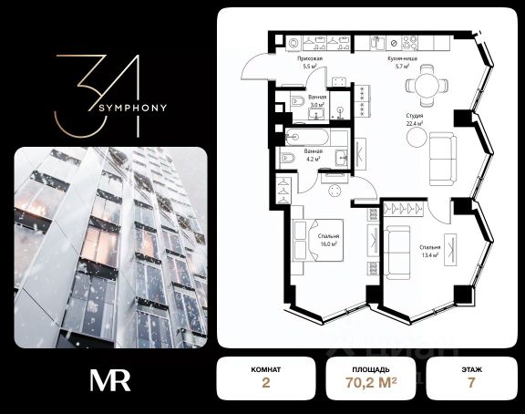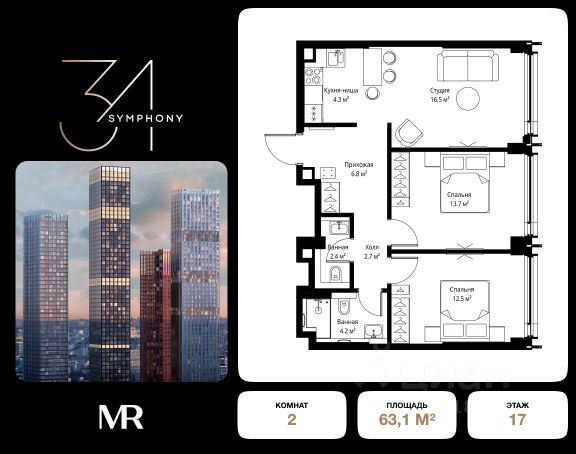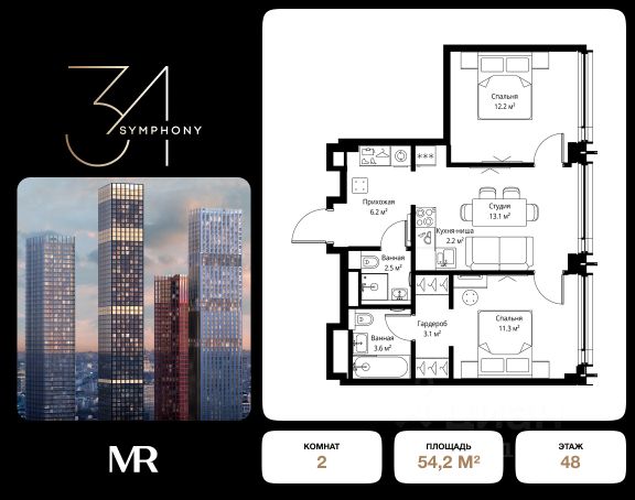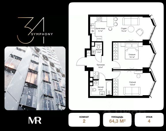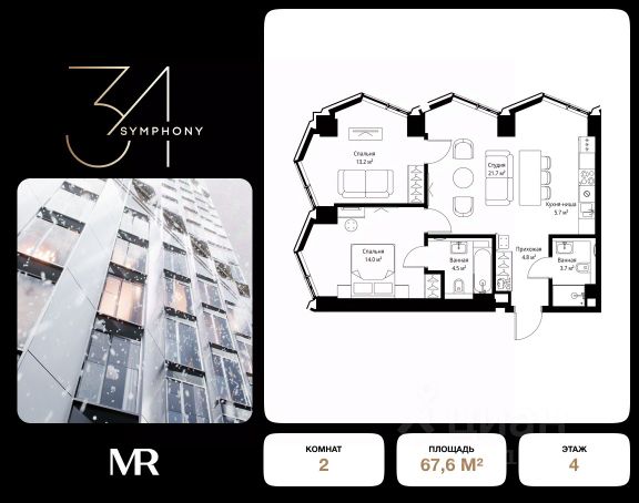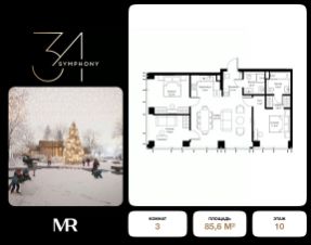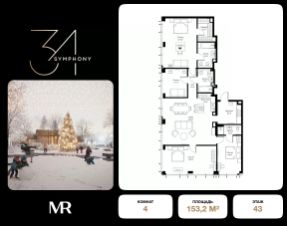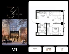 Дом сдан. Ключи в день покупки! В продаже 2-комнатная квартира площадью 63.20 м² с предчистовой отделкой на 27 этаже 54 этажного дома в корпусе Графит. ЖК Симфония 34 - концептуально новый жилой комплекс премиум-класса с подземной парковкой, состоит из четырех башен высотой 36 - 54 этажа. Квартиры сдаются с базовой (предчистовой) отделкой MR BASE или дизайнерской чистовой отделкой MR READY. Высота потолков 3 - 6 метров, окна высотой до 2,6 м. Более 100 кладовых в подземной части ЖК и более 500 на этажах. Безопасность - Система контроля входа на территорию комплекса, биометрия - Система автоматического водяного пожаротушения и противопожарного водопровода, система пожарной вентиляции - Доступ на парковку при помощи системы распознавания автомобильных номеров, карточка для контроля доступа резидентов - Система видеонаблюдения - Круглосуточная связь через приложение, телефон, голосовые сообщения с охраной, консьержем, call-центр. Расположение Пешком - 6 минут до метро "Дмитровская" - 15 минут до Тимирязевского парка На машине - 5 минут до Савеловского вокзала и Аэроэкспресса в Шереметьево - 10 минут до Москва-Сити и Садового кольца Благоустройство - 70% территории отведены под зеленые насаждения и ландшафтный дизайн - Приватный Японский сад - Детские площадки с зонированием по возрасту - Clubhouse для резидентов - Wellness & SPA - Зона для пикника, зона с гамаками - Центральное лобби, ресторан, коммерческие помещения - Дополнительный вход/выход на территорию комплекса Окружение - В 10 минутах от Symphony 34 находится дизайн-завод Flacon, где регулярно проходят культурно-образовательные и развлекательные мероприятия - Тимирязевский парк расположен в 850 м. Площадь парка 232 га - Рядом расположен парк "Дубки", площадью 16,5 га. - В 15 минутах расположен Хлебозавод 9. Здесь находятся шоурумы брендов, кафе разных кухонь мира, образовательные проекты и площадки для мероприятиКомпания MR предлагает своим клиентам специальные условия приобретения квартир в рамках программ ипотечного кредитования от банков-партнеров. Купить квартиру с отделкой рядом с метро Дмитровская.