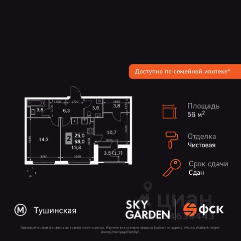 Прямая продажа от застройщика! Жилой Комплекс бизнес-класса. Продаётся 1-к квартира номер 1095 общей площадью 41.7 кв.м. на 14-м этаже 27 этажного здания. Чистовая отделка. Цена с учётом скидки. Особенности квартиры: - Организуем показ в удобное для вас время! - Просторная спальня, в которой можно разместить большую кровать. - Линейная планировка - максимальная функциональность и удобство. - Увеличенная ширина окна/окон - больше света и визуального простора. - Гибкая планировка - создайте пространство по своему вкусу. - Можно оборудовать рабочее место - комфорт для работы и учёбы. - Просторная мягкая зона - комфорт и уют для отдыха всей семьи. - Гардеробная - удобство для хранения и организации вещей. - Лоджия - уютное место для отдыха и тишины. Квартира с чистовой отделкой. Раскройте свою индивидуальность в создании своего уникального проекта, а трудоемкий ремонт мы возьмем на себя! Вы идете в ногу со временем и предпочитаете современные, универсальные дизайнерские решения? Или вы любитель строгой лаконичной классики? Тогда наши интерьеры придутся вам по душе! Выбирайте то, что ближе лично Вам и реализуйте свои задумки вместе с нами! Информация о комплексе: ЖК "Скай Гарден" в Покровском-Стрешнево: гармония природы и мегаполиса. Живите среди зелени одноимённого парка, рек и каналов с чистым воздухом, сохраняя все преимущества городской инфраструктуры. Идеальный баланс для тех, кто ценит природу без компромиссов в комфорте. Транспортная доступность: Всего в 12 минутах пешком до м. Тушинская и 15 минутах до станции Тушинская МЦД. На автомобиле: 2 км до Волоколамского шоссе, 2,5 км до МКАД и 15 км до Садового кольца Внутренняя инфраструктура: К вашим услугам игровые площадки для детей с горками и фонтанами. Йога на газоне, воркаут, велопарковки. На территории: поликлиника, аптека, супермаркет, зоны отдыха. Игровая комната в лобби, хранилище для велосипедов в подъездах. Рядом: кафе, пекарня, мастерские, секции. Парк 3,5 га с набережной для прогулок. Всё для жизни и спорта в шаговой доступности. Квартира с чистовой отделкой: ваш стиль без ремонта. Выбирайте современный дизайн или классику - мы воплотим ваши идеи. Готовые интерьеры для уникального дома.