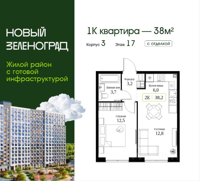 Квартира в ЖК "Новый Зеленоград" | 2-комнатная | 50.7 м² | 17 этаж из 18 | Срок сдачи — IV кв. 2025 года Откройте для себя комфорт и экологию в современном жилом комплексе "Новый Зеленоград" в окружении лесов и водоемов всего в 500 метрах от Зеленограда. Экологичная локация: Живите в гармонии с природой, не отказываясь от удобств города! Заповедные леса и водоемы — идеальное место для прогулок и активного отдыха 5 минут до Зеленограда — развитая городская инфраструктура 25 минут до МКАД — удобный выезд Современный комфорт: Архитектура с яркими фасадами и большими окнами Кладовые и просторные входные группы Высокие потолки (2,6 м), продуманные планировки с просторными комнатами и гардеробными Квартиры без отделки или с готовым ремонтом Развитая инфраструктура: Уже открыты детский сад и начальная школа с современными образовательными программами Магазины, кафе, аптеки, пункты выдачи и сервисы на первых этажах Игровые площадки для детей разных возрастов Спортивные площадки и футбольное поле, скейтпарк и зона воркаут для активного образа жизни Безопасность и удобство: Благоустроенные дворы без машин, видеонаблюдение Автомобильная парковка на территории Собственная управляющая компания Финансовые условия и программы покупки: Все виды ипотеки, включая гос. поддержку с высоким процентом одобрения Рассрочка до 3 лет — покупка квартиры стала еще доступнее ЖК "Новый Зеленоград" — идеальный выбор для тех, кто ценит экологию, комфорт, развитую инфраструктуру и выгодные условия покупки. Узнайте подробности и забронируйте квартиру у наших менеджеров!