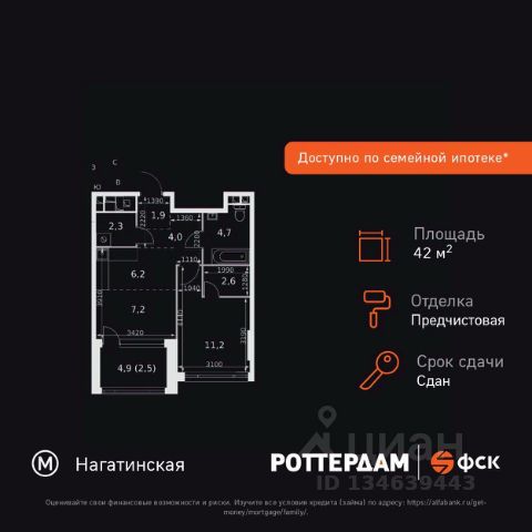 Прямая продажа от застройщика! Жилой Комплекс бизнес-класса на набережной возле Нагатинского причала. Продаётся 1-к квартира номер 82 общей площадью 42.6 кв.м. на 12-м этаже 29 этажного здания. Предчистовая отделка. Цена с учётом скидки. Особенности квартиры: - Организуем показ в удобное для вас время! - Мастер-зона с гардеробной. Просторное место для отдыха и удобного хранения вещей. - Линейная планировка - максимальная функциональность и удобство. - Линейная планировка - максимальная функциональность и удобство. - Увеличенная ширина окна/окон - больше света и визуального простора. - Просторная ванная - место для расслабления и уединения. - Постирочная - организуйте пространство для стирки и сушки вещей. - Евроформат - просторное и удобное жилье с отличной планировкой. - Гибкая планировка - создайте пространство по своему вкусу. - Гардеробная - удобство для хранения и организации вещей. - Просторная лоджия - идеальное место для уютных вечеров. Квартира с предчистовой отделкой. Вам не придется заниматься черновыми и трудоёмкими работы, а чистовую отделку и дизайн - сделайте на свой вкус. Информация о комплексе: ЖК "Роттердам": идеальная транспортная доступность для любого настроения. Пешая доступность до метро, удобный выезд на Варшавское шоссе к ТТК и Садовому кольцу, а также живописная Нагатинская набережная с маршрутом до Кремля. Выбирайте метро, автомобиль, трамвай или велопрогулки вдоль реки - всё под рукой. Транспортная доступность: Всего в 5 минутах пешком до метро Нагатинская и 8 минутах от МЦК Верхние Котлы. Рядом Аэроэкспресс до метро Домодево. До ТТК 2,2 км и 4,9 км до Садового кольца. Внутренняя инфраструктура: ЖК "Роттердам": идеальный баланс работы и отдыха на Нагатинской набережной. Коворкинги, детские площадки и игровой центр для всей семьи. Рядом - 5 парков, спортивные и деловые центры в шаговой доступности. Архитектура сочетает высотные и малоэтажные здания без ощущения "каменных джунглей". Панорамные виды из окон верхних этажей и прямой выход к Москве-реке. Уединённость, безопасность и комфорт для тех, кто ценит личное пространство и время. Квартира с предчистовой отделкой - ваш дизайн без черновых работ