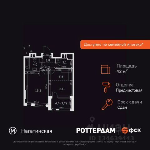 Прямая продажа от застройщика! Жилой Комплекс бизнес-класса на набережной возле Нагатинского причала. Продаётся 2-к квартира номер 177 общей площадью 50.5 кв.м. на 25-м этаже 29 этажного здания. Предчистовая отделка. Цена с учётом скидки. Особенности квартиры: - Организуем показ в удобное для вас время! - Мастер-зона с санузлом. Уют и комфорт в одном пространстве. - Линейная планировка - максимальная функциональность и удобство. - Увеличенная ширина окна/окон - больше света и визуального простора. - Гостевой санузел - комфорт и удобство для ваших гостей. - Евроформат - просторное и удобное жилье с отличной планировкой. - Гибкая планировка - создайте пространство по своему вкусу. - Место для игры/занятия спортом - идеальное пространство для активных детей. - Просторная мягкая зона - комфорт и уют для отдыха всей семьи. - Проходная кухня-гостиная - идеальное пространство для общения и готовки. - Гардеробная - удобство для хранения и организации вещей. - Лоджия - уютное место для отдыха и тишины. Квартира с предчистовой отделкой. Вам не придется заниматься черновыми и трудоёмкими работы, а чистовую отделку и дизайн - сделайте на свой вкус. Информация о комплексе: ЖК "Роттердам": идеальная транспортная доступность для любого настроения. Пешая доступность до метро, удобный выезд на Варшавское шоссе к ТТК и Садовому кольцу, а также живописная Нагатинская набережная с маршрутом до Кремля. Выбирайте метро, автомобиль, трамвай или велопрогулки вдоль реки - всё под рукой. Транспортная доступность: Всего в 5 минутах пешком до метро Нагатинская и 8 минутах от МЦК Верхние Котлы. Рядом Аэроэкспресс до метро Домодево. До ТТК 2,2 км и 4,9 км до Садового кольца. Внутренняя инфраструктура: ЖК "Роттердам": идеальный баланс работы и отдыха на Нагатинской набережной. Коворкинги, детские площадки и игровой центр для всей семьи. Рядом - 5 парков, спортивные и деловые центры в шаговой доступности. Архитектура сочетает высотные и малоэтажные здания без ощущения "каменных джунглей". Панорамные виды из окон верхних этажей и прямой выход к Москве-реке. Уединённость, безопасность и комфорт для тех, кто ценит личное пространство и время. Квартира с предчистовой отделкой - ваш дизайн без черновых работ