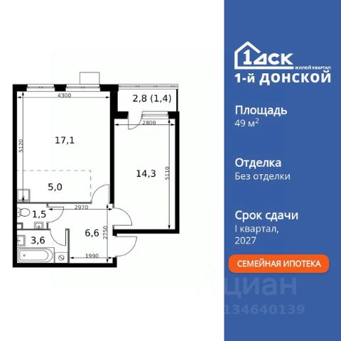 ТОЛЬКО 4 ДНЯ ДО 10.02 • Дополнительная скидка 10% • Ставка 10% по стандартной ипотеке для всех без наценок • Ставка 3,5% по семейной ипотеке Успейте купить выгодно! Прямая продажа от застройщика! Жилой Комплекс класса Комфорт Плюс. Продаётся 2-к квартира номер 532 общей площадью 49.5 кв.м. на 2-м этаже 24 этажного здания. Без отделки. Особенности квартиры: - МЦД-5 в пешей доступности - Квартал с собственной набережной - Свои 2 детских сада и школа - Просторная спальня, в которой можно разместить большую кровать. - Линейная планировка - максимальная функциональность и удобство. - Раздельный санузел - больше удобства для всех членов семьи. - Евроформат - просторное и удобное жилье с отличной планировкой. - Кухня-гостиная - идеальное пространство для встреч с близкими. - Линейная кухня - функциональность и практичность в одном решении. - Лоджия - уютное место для отдыха и тишины. Информация о комплексе: Комплекс 1-й Донской расположен в 7 км от МКАД по трассе М-4 Дон. В нем сочетаются все плюсы комфортной городской среды и природного окружения. В проекте достаточно большой процент квартир, выходящих на 2-3 стороны света. Секции-маяки формируют у зданий визуальную L-форму, что придает застройке структуру и ритмику объемов. На ощущение динамики работает и разная этажность зданий. Теплая цветовая палитра фасадов отражает природу Дона. Вечерами дома преображаются благодаря архитектурной подсветке, выгодно выделяясь на городском фоне. Природа оказывает положительное влияние на человека на всех уровнях восприятия: через зрение, запахи, звуки, тактильные ощущения. Неподалеку от ЖК Первый Донской: Ермолинский парк, Видновский лесопарк, Жуковский парк Транспортная доступность: Комплекс удобно расположен в 7 км от МКАД по трассе М-4 Дон (через Видное). Расстояние до Каширского шоссе составляет 12 км. Добраться до метро и центра Москвы позволяет развитая сеть маршрутов общественного наземного транспорта. Действующая ж/д станция Калинина Павелецкого направления в 15-17 минутах ходьбы (МЦД-5 в 2025-2026 гг). Внутренняя инфраструктура: Проект 1-й Донской соседствует с бурно развивающимся районом, основная инфраструктура которого уже сложилась. В строительстве современных жилых комплексов в округе есть свои плюсы: здесь формируется продуманная и комфортная городская среда. Что касается внутренней инфраструктуры, на территории квартала будут расположены собственные муниципальные 2 детских садика и школа, которые помогут совместить приятное с полезным. Территория комплекса пронизана целой сетью живописных пешеходных маршрутов, позволяющих попасть в любой уголок района. Основные пути, как водится, "торговые". Они проходят вдоль магазинов, кафе и других представителей коммерции и отделяются от проезжей части зеленой "фито" - стеной. Среди крупных социальных объектов предусмотрены своя поликлиника и торговый центр с примыкающей площадью для общественных мероприятий. Уют начинается с продуманного подъезда. Сквозные подъезды
