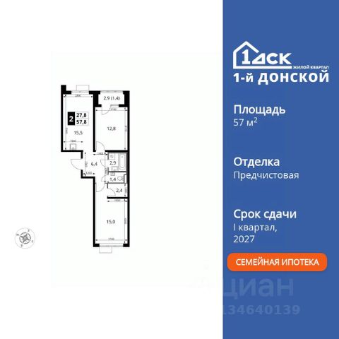 ТОЛЬКО 4 ДНЯ ДО 10.02 • Дополнительная скидка 10% • Ставка 10% по стандартной ипотеке для всех без наценок • Ставка 3,5% по семейной ипотеке Успейте купить выгодно! Прямая продажа от застройщика! Жилой Комплекс класса Комфорт Плюс. Продаётся 2-к квартира номер 747 общей площадью 57.8 кв.м. на 3-м этаже 24 этажного здания. Отделка Whitebox. Особенности квартиры: - МЦД-5 в пешей доступности - Квартал с собственной набережной - Свои 2 детских сада и школа - Мастер-зона с гардеробной. Просторное место для отдыха и удобного хранения вещей. - Распашная планировка - отличное сочетание удобства и свободы. - Просторная кухня - место для семейных ужинов и кулинарных экспериментов. - Гардеробная - удобство для хранения и организации вещей. - Лоджия - уютное место для отдыха и тишины. Квартира с предчистовой отделкой (White box). Вам не придется заниматься черновыми и трудоёмкими работы, а чистовую отделку и дизайн - сделайте на свой вкус. Информация о комплексе: Комплекс 1-й Донской расположен в 7 км от МКАД по трассе М-4 Дон. В нем сочетаются все плюсы комфортной городской среды и природного окружения. В проекте достаточно большой процент квартир, выходящих на 2-3 стороны света. Секции-маяки формируют у зданий визуальную L-форму, что придает застройке структуру и ритмику объемов. На ощущение динамики работает и разная этажность зданий. Теплая цветовая палитра фасадов отражает природу Дона. Вечерами дома преображаются благодаря архитектурной подсветке, выгодно выделяясь на городском фоне. Природа оказывает положительное влияние на человека на всех уровнях восприятия: через зрение, запахи, звуки, тактильные ощущения. Неподалеку от ЖК Первый Донской: Ермолинский парк, Видновский лесопарк, Жуковский парк Транспортная доступность: Комплекс удобно расположен в 7 км от МКАД по трассе М-4 Дон (через Видное). Расстояние до Каширского шоссе составляет 12 км. Добраться до метро и центра Москвы позволяет развитая сеть маршрутов общественного наземного транспорта. Действующая ж/д станция Калинина Павелецкого направления в 15-17 минутах ходьбы (МЦД-5 в 2025-2026 гг). Внутренняя инфраструктура: Проект 1-й Донской соседствует с бурно развивающимся районом, основная инфраструктура которого уже сложилась. В строительстве современных жилых комплексов в округе есть свои плюсы: здесь формируется продуманная и комфортная городская среда. Что касается внутренней инфраструктуры, на территории квартала будут расположены собственные муниципальные 2 детских садика и школа, которые помогут совместить приятное с полезным. Территория комплекса пронизана целой сетью живописных пешеходных маршрутов, позволяющих попасть в любой уголок района. Основные пути, как водится, "торговые". Они проходят вдоль магазинов, кафе и других представителей коммерции и отделяются от проезжей части зеленой "фито" - стеной. Среди крупных социальных объектов предусмотрены своя поликлиника и торговый центр с примыкающей площадью для общественных мероприятий. Уют