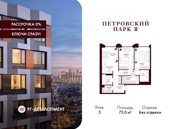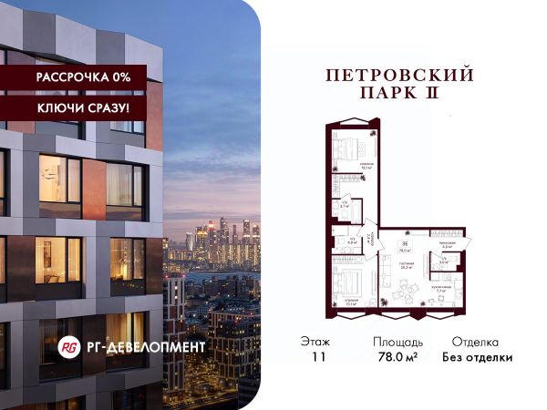 Рассрочка 0%. Первый платёж 30%, второй - не позднее 31.12.2026 г. Продаётся 1-комнатная квартира 43.1 кв.м. в ЖК "Петровский парк II" на 5-м этаже 19 этажного дома. ЖК "Петровский парк II" — жилой комплекс в Савёловском районе, где город ощущается иначе. Здесь история и масштаб Москвы не давят, а задают фон для спокойной, уверенной жизни рядом с центром. Это место, где статус читается не в громких формулировках, а в окружении, архитектуре и ощущении пространства. Коротко о важном: • Район с глубоким историческим контекстом и парковым окружением; • 5 минут пешком до метро "Динамо", рядом с деловой и культурной жизнью города; • Редкое сочетание: энергия мегаполиса и тишина зелёных аллей; • Архитектура от бюро Синтаксис с пластикой форм и индивидуальным характером фасадов; • Панорамные виды на город и зелёные массивы Петровского и Тимирязевского парков; • Закрытый двор без машин, вдохновлённый эстетикой дворцовых садов; • Просторные входные группы с высокими потолками и выверенной, респектабельной эстетикой; • Частный детский сад во дворе; • Подземная парковка и кладовые; • РГ-Девелопмент - ТОП-20 крупнейших застройщиков Москвы. Расположение комплекса формирует особое ощущение свободы выбора. Утром - прогулка по тенистым аллеям Петровского парка, днём - работа и встречи в деловых кластерах поблизости, вечером - культурные события, рестораны и городские пространства в нескольких минутах пути. Здесь расстояния измеряются не километрами, а шагами от дома. Архитектура "Петровского парка II" задумана как современный архитектурный акцент района и одновременно как уважительный диалог с исторической средой. Асимметричные объёмы, волнообразные элементы и игра света и тени создают выразительный, но сдержанный силуэт. Архитектура наполнена воздухом и визуальным ритмом, оставаясь спокойной и уверенной. Общественные пространства продолжают эту логику. Два парадных вестибюля с высокими потолками и благородной цветовой палитрой воспринимаются как пространства, где хочется замедлиться: встретить гостей, перевести дыхание после дня или просто почувствовать уровень среды, в которой вы живёте. Внутренний двор комплекса - это отдельный мир, закрытый от машин и городского шума. Продуманное благоустройство территорий отсылает к регулярным дворцовым садам: геометрия аллей, зелёные "кабинеты", цветники и камерные зоны отдыха создают разные сценарии для повседневной жизни. Здесь органично соседствуют детские игровые пространства, спортивные зоны и тихие места для отдыха. На территории комплекса расположены магазины, кафе и рестораны, а также частный детский сад, встроенный в общую структуру двора. Подземная парковка и кладовые поддерживают ощущение порядка и цельности пространства.