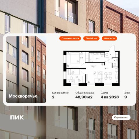 Продаётся 1-комн. квартира площадью 30,5 кв.м на 4 этаже 12 этажного дома (Корпус 1.4, Секция 8) проекта ПИК Москворечье. Светлый просторный подъезд на уровне земли, функциональная планировка, большие окна, c отделкой. Архитектурный проект разработан российским бюро Saga. Он представляет собой живую архитектурную среду, вдохновленную атмосферой исторических центров и разнообразием стилей. При этом каждый элемент разработан с вниманием к деталям и функциональности. Первая очередь, состоящая из четырех корпусов (1.1 - 1.4), запланирована к сдаче уже в 2027 году. Её общая площадь составит 103,3 тыс. м². Рядом с ней также появятся социальные объекты: образовательный центр, дошкольного и школьного образования на 3000 мест, включающий школу на 2500 мест, детские сады на 500 мест. Также на территории жилого квартала откроются два уютных детских сада, каждый на 350 мест и школа на 1350 мест. Кроме того, в "Москворечье" будет построена поликлиника, которую ежедневно смогут посещать до 450 пациентов. Внутри будет установлено современное оборудование для диагностики и профилактики. Также рядом будут созданы общественные пространства, технопарк, который обеспечит район новыми рабочими местами, досуговый центр, спортивные объекты и торговый центр. Все квартиры сдаются с готовой отделкой - заселиться можно сразу после получения ключей. В квартирах будет натяжной потолок, качественный ламинат, обои под покраску с лаконичной фактурой, межкомнатные и входные двери с дополнительной шумоизоляцией. Лобби выполнены в стиле современного минимализма. В отделке использованы долговечные материалы с выразительной фактурой: кирпич сочетается с мраморным бесшовным полом из наливного материала терраццо, гладкой плиткой и стеклом. Для автовладельцев будет доступен подземный паркинг. Особое внимание уделяется зоне первых этажей, где будет сформирована насыщенная городская среда. Здесь появятся общественные пространства, пешеходные галереи, коммерческие помещения и другие полезные сервисы для жителей. Точкой притяжения станет пешеходный бульвар, где будут расположены игровые площадки для детей разных возрастов и спортивные зоны. Квартал отличается хорошей транспортной доступностью. Ближайшие станции метро у жилого квартала "Москворечья" - "Каширская", "Кантемировская" и БКЛ "Варшавская", 1 минута на авто до ЮВХ, 15 минут до ТТК и МКАД. В 15 минутах от проекта парк культуры и отдыха "Долина реки Чертановка" и парк "Коломенское". До музея Царицыно, где регулярно проходят выставки и концерты - 20 минут на автомобиле. Артикул 964742 (Застройщик ООО "СЗ ИМПУЛЬС")