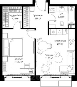 • ✅ Минимальная площадь: 22,3 м²