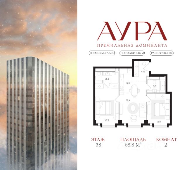 1-комнатная квартира площадью 35,8 м2. Высота потолков 3,16 м. Этаж 2 из 41. О проекте АУРА новая премиальная доминанта Москвы в 10 минутах от Садового кольца. Проект состоит из 42-этажной Бронзовой башни и 41-этажной Серебряной. Рядом набережная Москвы-реки, Даниловский рынок, музеи и галереи, престижные школы и вузы. Двор и благоустройство Приватная территория АУРЫ состоит из нескольких функциональных зон для тихого отдыха, работы и активного времяпровождения на свежем воздухе. На нижнем уровне расположены детские и спортивные площадки, скалодром и крытый павильон для подвижных игр. Выше — амфитеатр для отдыха и вечерних променадов, уличный коворкинг с мебелью и лаунж-зоны с лежаками у воды. На крыше — тихий уголок для занятий йогой, встречи рассветов и наслаждения закатами. По всему двору проложены пешеходные дорожки с подогревом в зимний сезон. Придомовую территорию АУРЫ украсит уникальный для Москвы объект — скала из натурального камня с водопадом, которая станет новой городской достопримечательностью. Эксклюзивная инфраструктура Только для резидентов: • Бьюти-комната • Коворкинг, переговорные и акустические кабинеты • Детская игровая комната • Спортзал и студия для тренировок • Просторные колясочные • Сервисная комната • Лапомойки для домашних питомцев Инфраструктура в составе проекта: • Ресторан авторской кухни • Современная медицинская клиника • Частный детский сад • Бизнес-центр класса "А" • Коммерческие помещения, закрывающие любые потребности — супермаркет, химчистка и др. Атрибуты комфорта • Индивидуальная вентиляция квартир • Вентиляция с очисткой воздуха в общих зонах • Мультизональное центральное кондиционирование (VRF) • Горячая вода круглый год • Вода качества, сопоставимого с питьевой • Усиленная звукоизоляция квартир Входные группы • Гранд-лобби в стиле современной роскоши • Дизайнерские лобби в каждой башне • Панорамное остекление Квартиры Более 40 планировок: от уютных студий до просторных семейных лотов. Всего 916 квартир площадью от 28,1 до 148,8 м². Высота потолков от 3,16 до 6,2 м. Уникальные планировки: • Квартиры с террасами • Квартиры с окном в ванной • Квартиры с круговым остеклением • Двухуровневые пентхаусы Паркинг и келлеры Двухуровневый подземный паркинг на 563 парковочных места: • Постоянные места: 496 (в том числе 48 мест для маломобильных) • Гостевые места: 67 • Персональные кладовые и велостанция • Мойка автомобилей • Станция для подкачки шин • Зарядки для электромобилей • Зона для разгрузки крупногабаритных предметов Интеллектуальные системы • Персональный бесконтактный доступ на территорию и в здание по электронному ключу (Bluetooth/RFID) • Премиальные лифты Mitsubishi • Автоматический въезд на паркинг для резидентов по распознаванию номеров • Круглосуточное видеонаблюдение с возможностью push-уведомлений • Система датчиков для круглосуточного мониторинга • Усиленный сигнал связи — стабильный прием сотовой связи и интернета на всей территории Сервис • Управляющая компания де