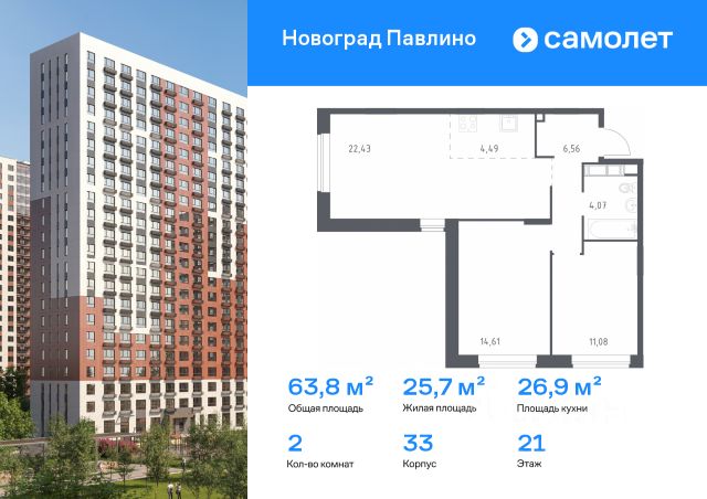 Строим кварталы для жизни с заботой о будущем. Предлагается 1-комнатная квартира комфорт-класса 42,2 кв.м в корпусе 7 на 19 этаже, в ЖК "Новоград Павлино" Квартира с предчистовой отделкой. Доступность дополнительных опций уточняйте у застройщика. Приобрести квартиру возможно по специальным акциям от застройщика, с текущими условиями акций можно ознакомиться в блоке "Акций". Цена динамическая и может отличаться, уточняйте актуальность у застройщика. "Новоград Павлино" находится в 13 км от МКАД рядом с рекой Пехорка и в окружении трех лесопарков - Павлинского, Салтыковского и Ольгинского. Современные монолитно-кирпичные дома с широким выбором квартир. В жилом комплексе представлены разные планировки европейского формата с высотой потолков 2,8 м.