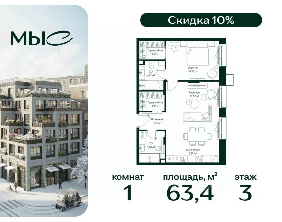 Прямая продажа от застройщика. Продаётся 1-комнатная квартира общей площадью 48.04 м² без отделки в премиальном жилом комплексе "МЫС" на 6-м этаже 12 этажного дома. Квартира расположена в корпусе "Сибирь". Проект МЫС — это, прежде всего, идеальное место для семей. В рамках проекта построят государственную школу, два детских сада и дворец спорта площадью 20 000 м2 с термальным комплексом, выплывным бассейном, фитнес-залом, теннисными, сквош и падел кортами и секциями для детей. На территории площадью, сравнимой с тремя парками Зарядье, появятся кафе и рестораны, пруд с набережной, спортивные и детские площадки, скейт-парк, лыжные и веломаршруты. Расположение: - 2 минуты до скоростной трассы М1 и Минского шоссе; - 10 минут до МКАД; - 15 минут до МЦД Лесной Городок - 20 минут до делового центра "Москва-Сити"; - 28 минут до аэропорта "Внуково". Благоустройство: - велосипедные и лыжные маршруты; - собственная набережная и парк; - лаунж-зоны в окружении природы; - беседки у очага; - дворец спорта площадью 20 000 м²; - термальный комплекс с тремя бассейнами; - 4 теннисных и падел-корта; - 6 сквош-кортов; - многофункциональный спортзал; - скейт-парк; - просторная площадь для прогулок с фонтаном; - детский клуб с творческими секциями; - гастро-доминанта; - кафе у пруда, рестораны, ритейл. Окружение - соседство с лесным фондом; - школа на 1250 мест и 2 детских сада на 350 и 255 мест; - Дубковский и Подушкинский леса, парк "Рассказовка", Мещерский парк. Действуют специальные условия при 100% оплате, подробности уточняйте у менеджера в офисе продаж.