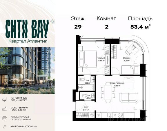 Прямая продажа от застройщика. Продаётся 2-комнатная квартира общей площадью 53.41 м² с предчистовой отделкой в ЖК Сити Бэй на 16-м этаже 53 этажного дома. Концепция жилого комплекса Сити Бэй - настоящий город в городе с отлично развитой инфраструктурой и собственной благоустроенной набережной. На территории жилого комплекса расположено пять кварталов - Атлантик, Пасифик, Индиан, Норс, Клиф. Жилой квартал Сити Бэй отличается оригинальной концепцией и выделяется среди других проектов такими характеристиками как: - Архитектура, - Виды из окон, - Природное окружение, вызывая гордость у жителей и восхищение у прохожих. Вся жизнь района Покровское-Стрешнево строится вокруг водных объектов: - Пойма реки Сходни с уникальной экосистемой, - Речка Химка и Химкинское водохранилище, - Москва-река, - Канал имени Москвы. Кругом вода, и местные с удовольствием этим пользуются. А сразу за рекой - центр водного спорта в Строгино с вейк-парком и яхт-Клубами. Помимо воды, здесь очень много зелени: - Рядом Сходненский ковш памятник природы, естественный амфитеатр глубиной 40 метров; - Парк при усадьбе Братцево с фруктовым садом; - Дубовая роща "Маяк", - Алешкинский лес; - Лесопарк Покровское-Стрешнево с пляжами и бобрами. Главные транспортные артерии района: - Волоколамское шоссе, - Таганско-Краснопресненская линия метро и МЦД-2. Всего за 20 минут можно добраться до центра на машине или метро, а МЦД связывает ЖК Сити Бэй с северными, восточными и юго-восточными районами. Компания MR предлагает своим клиентам специальные условия приобретения квартир в рамках программ ипотечного кредитования от банков-партнеров.