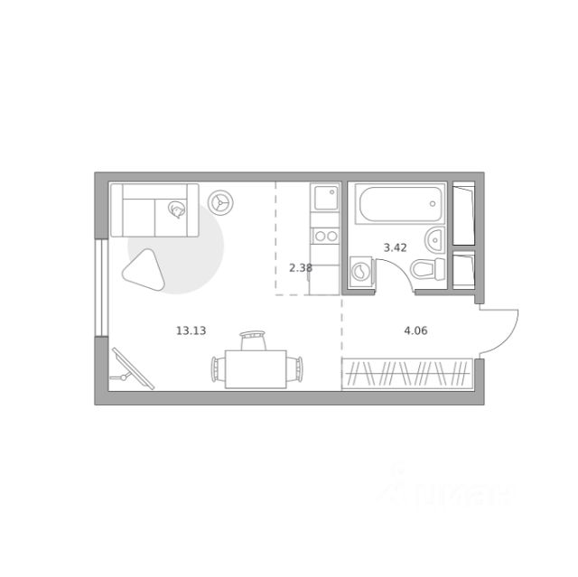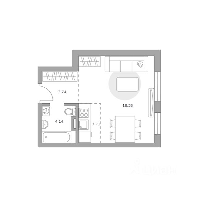 Продаётся студия 428, площадью 24,08 м², на 14 этаже в ЖК "Аникеевский" корпус 1.1. Стоимость — от 5482685 руб. Квартира без отделки, планировка односторонняя, окна во двор.