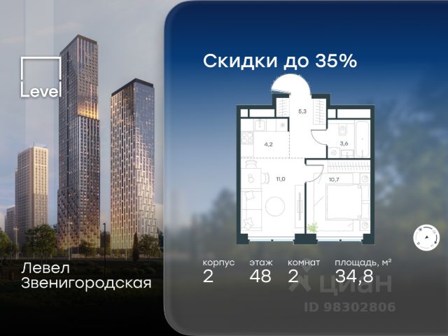 10 минут от Москва-Сити В продаже квартира площадью 85.51 м² без отделки на 8 этаже 55 этажного дома. Квартира расположена в корпусе Анна. Джойс — это премиальный жилой комплекс от девелопера MR в районе Хорошёво-Мнёвники. Он включает несколько эффектных небоскрёбов высотой 47-56 этажей, эксклюзивные форматы квартир с панорамным остеклением, подземный двухуровневый паркинг на 239 м/м, собственную приватную инфраструктуру, закрытый ландшафтный парк 2,3 Га с функциональным зонированием и охраняемой территорией. Над проектом работали лучшие команды международных агентств с многолетним опытом: Genpro, S&P, iLight International и другие. Расположение Пешком: - 5 мин. ст. МЦК "Хорошёво"; - 15 мин. ст. м. "Народное ополчение"; - 10 мин. ст. метро "Звенигородская" с 2027 года; - 20 мин. причал "Карамышевский". На автомобиле: - 3 мин. до Звенигородского шоссе; - 5 мин. до ТТК: - 8 мин. до Серебряного бора и Строгинского затона - 10 мин. до ММДЦ "Москва-Сити"; - 40 мин. до аэропорта "Шереметьево"; Благоустройство - собственный ландшафтный парк 2,3 Га; - парк скульптур от Cosmoscow; - консьерж-сервис 24/7; - сервисный лифт и вход; - игровые и спортивные площадки; - коворкинг с библиотекой; - лаунж-зона с камином; - игровые комнаты для детей и Клуб для подростков с оборудованием для видеоигр; - спортивная студия для индивидуальных тренировок; - гостиная с мини-кухней; - зоны для выгула собак; - подогрев пешеходных дорожек в зимний период; - автополив зелёных насаждений; - премиальные рестораны, кафе, химчистки, аптеки и супермаркеты. Окружение - 4 парка: Покровское-Стрешнево, Филёвский парк, Серебряный бор и Берёзовая роща; - 15 общеобразовательных заведений, в том числе две школы из самых лучших в Москве: государственная школа "Интеграл" и частная "Хорошкола"; - спортивное сооружение "ВЭБ Арена", домашний стадион ФК ЦСКА; - крупнейший в Европе торгово-развлекательный центр "Авиапарк".