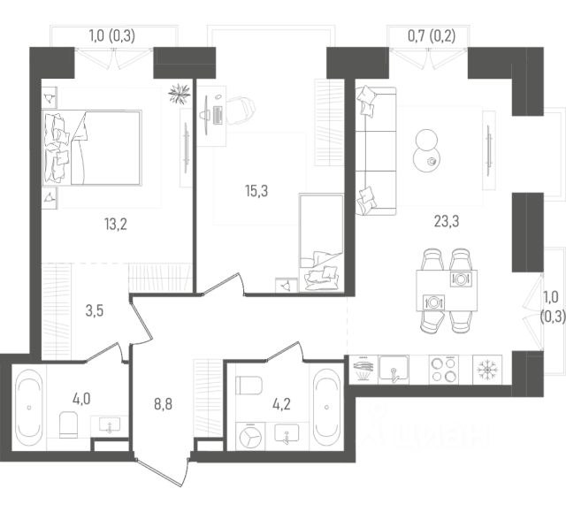 Рассрочка 0% с платежом от 120 000 ₽ в месяц. 3-комн. квартира в ЖК "Ever" на 34 этаже в 34 этажном здании Корпус 4. Общая площадь: 66.6 кв.м., жилая: 48.1 кв.м. Высота потолков 3.85 м. Top Floor — это пространство, которое сочетает в себе уникальный комфорт и элегантность. Увеличенная высота потолков создает ощущение простора и свободы, позволяя свету беспрепятственно заполнять каждый уголок. Здесь вы можете наслаждаться завораживающими панорамными видами на Сити, здание МГУ и Воронцовский парк, которые открываются из больших окон. Каждое утро вы встречаете, глядя на величественные силуэты, которые становятся частью вашего повседневного вдохновения. Город оживает перед вами, и каждый момент наполняется новыми впечатлениями. Утренние лучи солнца отражаются на стеклах, а вечерние огни создают атмосферу магии и уюта. Top Floor — это не просто место для жизни, это возможность наслаждаться атмосферой мегаполиса, оставаясь в уединении. Широкие пространства позволяют вам организовать интерьер по своему вкусу, а высокие потолки придают помещению особую элегантность. Вы можете создавать здесь уютную атмосферу для встреч с друзьями или просто наслаждаться уединением, наблюдая за жизнью города. Это место, где каждый день наполняется новыми красками и возможностями. Top Floor — ваш личный уголок, где царит гармония и комфорт, а виды на Москву становятся фоном для вашей жизни. Жилой комплекс EVER — это гармоничное сочетание динамики мегаполиса и умиротворенности природы. Всего семь минут неспешной прогулки отделяют вас от станции метро ""Калужская"", обеспечивая быстрый доступ ко всем преимуществам жизни в Москве. Вернувшись домой, вы попадаете в атмосферу спокойствия и комфорта. Продуманная инфраструктура комплекса включает в себя не только уютные квартиры, но и удобный подземный паркинг, избавляющий вас от хлопот с поиском места для парковки, а также индивидуальные кладовые помещения, где можно хранить все необходимое. В EVER вы найдете идеальное сочетание комфорта и удобства, позволяющее наслаждаться всеми преимуществами жизни в столице, не забывая о важности спокойствия и близости к природе.