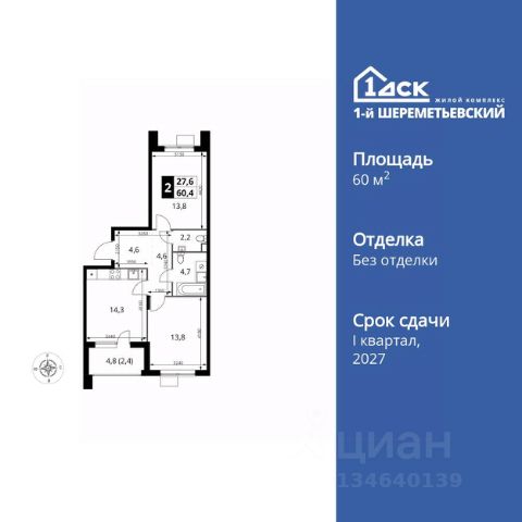УСПЕЙ ПО СЕМЕЙНОЙ ИПОТЕКЕ БЕЗ НАЦЕНКИ! Квартиры в готовом квартале от 30 000 рублей в месяц! Прямая продажа от застройщика! Жилой Комплекс класса Комфорт Плюс. Продаётся 2-к квартира номер 1130 общей площадью 54.6 кв.м. на 7-м этаже 17 этажного здания. Без отделки. Особенности квартиры: - Просторная спальня, в которой можно разместить большую кровать. - Распашная планировка - отличное сочетание удобства и свободы. - Увеличенная ширина окна/окон - больше света и визуального простора. - Возможность установить вторую раковину или биде - удобство для всей семьи. - Гостевой санузел - комфорт и удобство для ваших гостей. - Можно оборудовать 2 или более рабочих места - пространство для нескольких человек. - Можно оборудовать рабочее место - комфорт для работы и учёбы. - Линейная кухня - функциональность и практичность в одном решении. - Лоджия - уютное место для отдыха и тишины. Информация о комплексе: ЖК 1-й Шереметьевский расположен в самом центре Подрезково, от него всего 6 минут пешком до одноименной станции ж/д и планируемой к открытию МЦД-3. В комплексе яркие и уютные, лобби, большая колясочная, лапомойка. Благодаря гостевому санузлу на 1 этаже прогулки станут по-настоящему долгими. Два лифта пассажирский и грузовой.Во всех корпусах 1-го Шереметьевского там устроены кладовые, а в корпусах 3-5 есть подземный паркинг. В ЖК 1-й Шереметьевский разнообразие площадей и планировок. Большие кухни-гостиные: в них два окна или больше. Во всех квартирах площадью от 40 кв.м. и выше спроектировано 2 санузла. Большие остекленные лоджии с отделкой. Система Умная квартира, реализованная в 1-м Шереметьевском. В каждой квартире установлены датчики протечек и запорные вентили с электроприводом, которые самостоятельно перекрывают воду в случае аварии. Мобильное приложение управляет группами электропотребителей: даже если вы забыли утюг включенным, можно обесточить его дистанционно. Транспортная доступность: - Общественный транспорт: До ближайших станций метро Планерной и Войковской около 40-50 минут на автобусе. 6 минут до ЖД станции Подрезково (МЦД-3) - Личный автотранспорт: Удобный выезд на Ленинградское шоссе позволяет быстро добираться до МКАДа и в центр Москвы, до платной трассы М11 и в аэропорт Шереметьево. 3 минуты до Ленинградского ш. 10 минут до платной трассы М11 15 минут до МКАД 20 минут до ст. м Войковская 25 минут до ст. м Планерная Внутренняя инфраструктура: 1-й Шереметьевский не только сокращает время, которое вы будете проводить в дороге. Но и предпринимает многое, чтобы вы меньше ездили и чаще ходили. На первых этажах корпусов разместятся фрешмаркеты и пункты выдачи маркетплейсов, салоны красоты и химчистки, кофейни и пекарни всё, что необходимо изо дня в день, но не заслуживает отдельной поездки на машине или такси. В квартале будут построены собственные школа и детский сад. Школа рассчитана на 1100 учеников. В ней будут 25-метровый бассейн и просторный атриум, медиатека. Детский са