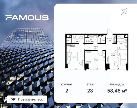 Прямая продажа от застройщика. Продаётся 1-комнатная квартира общей площадью 38.27 м² с предчистовой отделкой на 2-м этаже премиального небоскреба Famous. Срок ввода в эксплуатацию - IV кв. 2024 г. Выдача ключей - III кв. 2025 г. Если к слову "будущее" подобрать архитектурный синоним, им непременно станет премиальный небоскреб Famous. Он расположен в закрытом квартале "Фили Сити" - настоящем городе в городе, окруженном зеленым ореолом из аллей и скверов, с инфраструктурой для жизни и отдыха самых взыскательных горожан. Резидентов Famous ждет особая привилегия - открывающиеся из окон бескрайние панорамы, с видами на парк Фили, Поклонную гору, Москва-реку и Москва-Сити. Эффектный ультрасовременный 57-этажный небоскреб, пластичный в нижней части, наверху трансформируется и взмывает ввысь выразительной скульптурой с обтекаемой поверхностью. Фасад украшенный стеклянными эркерами в виде прямых треугольных призм, словно олицетворяет собой идеально собранный пазл. Это безупречное решение для тех, кто не боится лидерства и высоты, не ищет простых путей, держит высокую планку во всем, не останавливается на достигнутом и живет в ритме мегаполиса. Не зря логотип Famous украшает графический элемент Триумфальной арки на Кутузовском проспекте - символ успеха и жизненных побед. Особенности дома: - Проект премиум-класса рядом с центром Москвы - Футуристическая авторская архитектура от бюро ADM - Ультрасовременные инженерные решения современных небоскрёбов - Элегантное решение орнаментальной композиции фасада от бюро ADM - Famous станет первым проектом в Москве с интерьерами лобби от международной архитектурной компании A ++ - Панорамное остекление по всему фасаду, головокружительные виды на достопримечательности Москвы, парк Фили, Москва-Сити и Поклонную гору - Европейский подход к благоустройству: площадь с фонтанами, парк-променад, детские и спортивные площадки, зоны отдыха - Продуманная концепция инфраструктуры: уютные кафе и рестораны, супермаркет, фитнес-студия, службы сервиса, детский центр развития - Эргономичные планировки от бюро Олега Клодта Транспортная доступность: - Удобный выезд на Кутузовский проспект и ТТК - В пешей доступности станции метро "Фили", "Багратионовская" и "Парк Победы" Компания MR предлагает своим клиентам специальные условия приобретения квартир в рамках программ ипотечного кредитования от банков-партнеров. Квартира в ипотеку в новостройке рядом с метро Парк Победы.