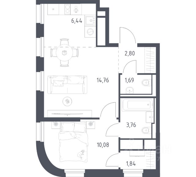 - кухня ниша 5,53 кв. м. объединена с комнатой 10,36 кв. м.;