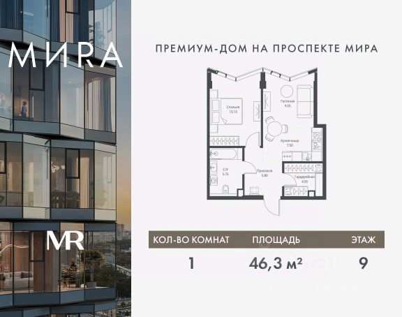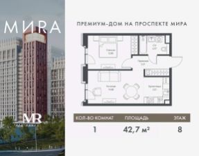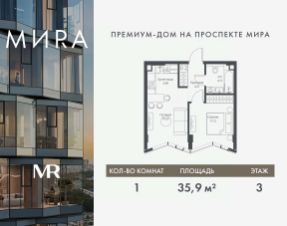 Прямая продажа от застройщика. Продаётся 1-комнатная квартира общей площадью 35.87 м² без отделки в доме премиум-класса МИRА на 3-м этаже 24 этажного дома. Квартира расположена в корпусе 3. Дом премиум-класса МИRA это: • Спокойный район с богатой историей и сложившейся инфраструктурой • Авторская архитектура на стыке классики и современности • Вход в парк прямо из жилого комплекса • Панорамные виды на Яузу, парки, ВДНХ и скульптуру "Рабочий и колхозница" • Удобные сервисы и безопасность для каждого резидента Расположение: Жилой квартал расположен в Алексеевском районе на северо-востоке Москвы, на второй линии домов, таким образом вы сможете дистанцироваться от шума и суеты проспекта Мира, но при этом будете жить недалеко от этой важной городской магистрали. Прямо у дома: • Парк Акведук • Река Яуза • Памятник "Рабочий и колхозница" Пешком: • 16 мин м. ВДНХ На автомобиле: • 12 мин ТТК • 15 мин Садовое кольцо • 12 мин Национальный парк "Лосиный остров" Благоустройство: Концепция благоустройства от бюро "ДРУЖБА" разработана в стиле "Лесная тропа". В уютном дворе расположились словно затерянные в лесу, площадки для отдыха. Они разделяются островками с травами, кустарниками, крупными камнями и деревьями, между которыми проходят узкие песчаные тропинки с деликатной подсветкой по вечерам. Центральной точкой притяжения для жителей станет главная площадь с фонтаном, которая открывается сразу из двух входных групп. Внутренний двор МИRA: • Детская площадка с зонами для игр малышей до трех лет и детей более старшего возраста • Спортивная площадка с профессиональным оборудованием для тренировок • Декоративные перголы • Воздушный арт-объект с подсветкой, похожий на облако • Чайный домик, где в отдельном отапливаемом павильоне можно в любое время года попить кофе с соседями или устроить камерное семейное чаепитие • Зоны для работы и отдыха с гамаком под навесом, скамейками и креслами Инфраструктура и окружение: В Алексеевском районе есть огромные благоустроенные парки, магазины, гимназии с высоким рейтингом и филиалы ВУЗов, частные и государственные детские сады, модные кофейни и фитнес-центры. В квартале МИRА предусмотрены: • 2 ресторана с видом на парк Акведук • 3 кафе • фитнес-студия • подземный паркинг на 330 машино-мест Компания MR предлагает своим клиентам специальные условия приобретения квартир в рамках программ ипотечного кредитования от банков-партнеров.