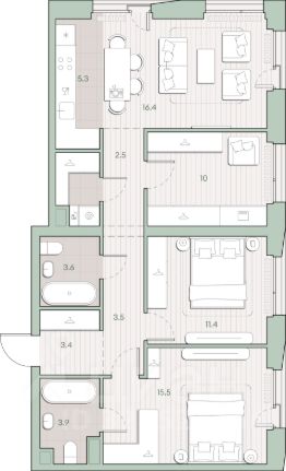 О квартире Продаётся 3-комнатная квартира общей площадью 89 кв.м. без отделки. Квартира расположена на 12 этаже корпуса 5.7 в жилом комплексе бизнес-класса "Среда на Лобачевского" в пешей доступности от метро "Аминьевская". О жилом комплексе "Среда на Лобачевского" полностью соответствует критериям современного жилого пространства. Взяв за основу рациональный подход, мы гармонично соединили дизайн, актуальные тренды и функциональность. Продуманный современный экстерьер и функциональные планировки внутри, приватные пространства и разнообразные досуговые зоны для каждого члена семьи — все это "Среда на Лобачевского". Инфраструктура Район отлично развит и наполнен жизнью, здесь уже есть вся необходимая инфраструктура — детские сады, школы, медучреждения, торговые центры, благоустроены парки для прогулок и отдыха, удобен и легкодоступен городской транспорт. Рядом расположены учебные корпуса крупных университетов — МГУ, МГИМО и РАНХиГС. Школы и детские сады в районе занимают высокие позиции в городских рейтингах, поэтому вам не придется беспокоиться о качестве образования детей. Как и об отдыхе: поблизости расположены живописные пруды, реки и парки. Это Парк Олимпийской деревни, Парк имени 50-летия Октября, Мещерский парк и Очаковские пруды. Теперь поставить галочки в еженедельном чек-листе "спорт-прогулки-встречи с друзьями" можно, не покидая любимый район. Особенности Особое внимание в проекте уделяется созданию функциональных пространств не только внутри дома, но и за его пределами. В ландшафтном парке "Среды на Лобачевского" расположены крытые зоны для спокойного времяпровождения, места для активного отдыха и спорта, коворкинг, соседский комьюнити-центр, водные объекты. —Ландшафтный парк во дворе. —Водный сад с зонами отдыха. —Зоны коворкинга. —Дизайнерские гранд-лобби. —Бесключевой доступ. —Подземный паркинг. Квартира в ипотеку в новостройке в районе Очаково-Матвеевское в Москве.