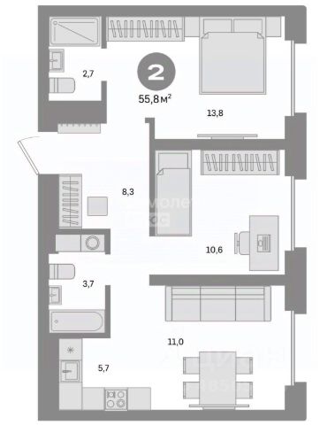 Состояние квартиры — предчистовая отделка: