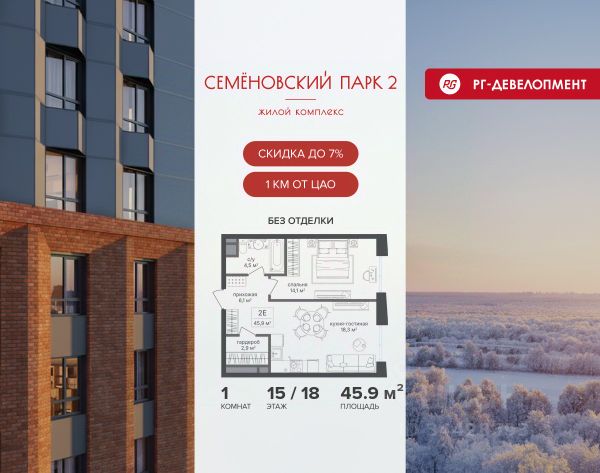 Ипотека для каждого! Полная стоимость кредита от 12,378% до 18,537%. Ставка от 0,11% в АО "Альфа-Банк", ген. лицензия ЦБ РФ 1326 от 16.01.2015. Ставка фиксируется на первые 12 месяцев, далее полная стоимость кредита от 22,025% до 24,935% ставка 21,59%. Первоначальный взнос — от 20,1% от стоимости квартиры. Срок кредитования — от 4 до 30 лет. Ипотека на весь срок! Полная стоимость кредита от 23,396% до 26,058% со ставкой 14,5%! Первоначальный взнос —от 20,01% от стоимости квартиры. Срок кредитования — от 3 до 30 лет. АО "Банк ДОМ.РФ" универсальная лицензия Банка России 2312 от 19.12.2018. Скидка 7% при покупке квартиры! Цена указана с учетом максимального размера скидки. Продается 2-к квартира 53,7 кв.м. в ЖК "Семеновский парк 2" на 3-м этаже 26 этажного дома. Компания "РГ-Девелопмент" предоставляет скидку на квартиры в жилом комплексе. Акция действительна до 15.02.2026 включительно. Чтобы воспользоваться предложением, необходимо подписать договор на приобретение недвижимости до 15.02.2026 включительно. Компания "РГ-Девелопмент" вошла в ТОП-10 девелоперов по объёму введённого жилья в "Старой Москве" по итогам 2025 года. Прямая продажа от застройщика! Квартиры без отделки. Срок сдачи корпуса - 4 кв. 2025 г. ЖК "Семеновский парк 2" - это идеальное место для того, чтобы стать вашим домом. Проект расположен в исторической части Москвы вблизи Измайловского лесопарка, в 1 км от ЦАО. 4 станции метро отделяют вас от Красной площади и 15 минут на автомобиле - от Садового кольца.
