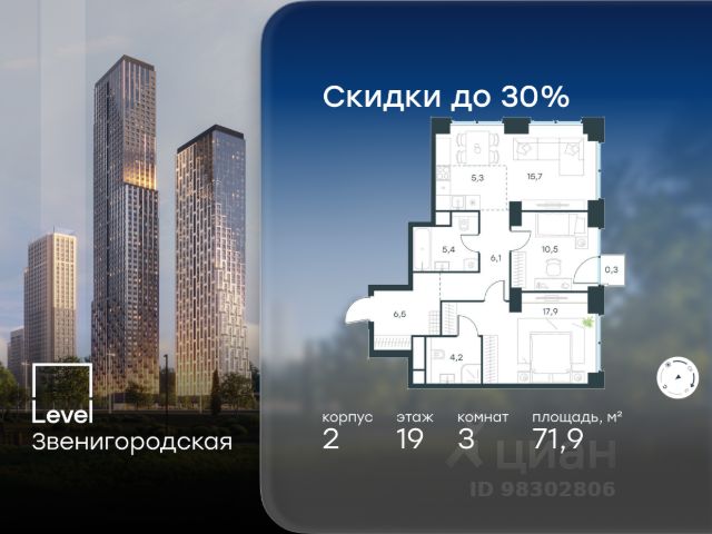 Продается двухкомнатная квартира в городе-парке "Переделкино Ближнее". Общая площадь квартиры - 39,8 кв. м, этаж 9 из 17. Срок сдачи - 1 квартал 2028 года. Тип дома - монолитный. Корпус расположен в новой 13 фазе строительства и состоит из 8 секций с переменной этажностью 12-17 этажей. Все секции без отделки. Около 13 фазы запланировано строительство многоуровневого паркинга на 300 м/мест. 13 фаза имеет уникальное расположение и находится непосредственно на берегу Федосьинского пруда, который является сердцем города-парка "Переделкино Ближнее". Город-парк "Переделкино Ближнее" расположен в 8 км от МКАД по Боровскому шоссе. ТРАНСПОРТНАЯ ДОСТУПНОСТЬ: - 15 минут пешком до станции МЦД-4 "Мичуринец" - 25 минут пешком до станции метро "Рассказовка" Солнцевской линии - 30 минут до центра Москвы - 2026 г. - открытие трассы Солнцево-Бутово-Варшавское шоссе РАЗВИТАЯ СОЦИАЛЬНАЯ ИНФРАСТРУКТУРА: - 7 детских садов, 3 школы - банки, продуктовые магазины, аптеки, фитнес центры, салоны красоты и пр БЛАГОУСТРОЙСТВО: - дворы без машин - игровые зоны и развивающие детские площадки - зоны для созерцательного и медитативного отдыха - зоны для занятий спортом ОСОБЕННОСТИ АРХИТЕКТУРЫ: - высокие потолки от 3,03 м - безбарьерные входные группы - колясочные в каждой входной группе - кладовые помещения расположены на -1 этаже каждой секции - в каждой секции 2 лифта: 1 пассажирский, 1 грузовой - на фасаде предусмотрены корзины для установки кондиционеров АВТОРСКИЙ ДИЗАЙН: Входные группы выполнены по авторскому дизайну, благодаря панорамному остеклению наполнены естественным светом. В каждой входной группе будет располагаться комфортабельная зона ожидания с возможностью зарядить электронные устройства, почтовые ящики, колясочная, акцентные пуфы и столик. Квартира в доме комфорт класса.