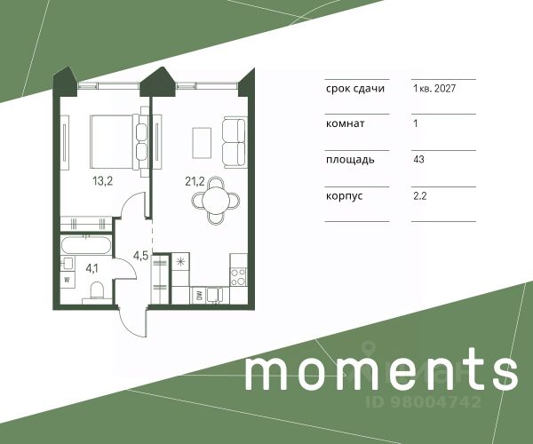 Цены указаны с условием 100% оплаты и стандартной ипотеки. Продается 2-к. квартира номер 1147 общей площадью 56.7 кв.м. на 20-м этаже 34 этажного дома, корпус 2.2. С отделкой White Box. Moments — ЖК бизнес-класса, расположен на расстоянии вытянутой руки от старинного усадебного парка Покровское-Стрешнево. Moments — это единение города и природы, дом, который помогает обрести гармонию и баланс в жизни. Moments расположен на Волоколамском шоссе с удобным выездом в центр и в область, а также с расположенными в пешей доступности объектами транспортной инфраструктуры (МЦК и МЦД-2). Жилой комплекс будет состоять из 3 очередей — 8 корпусов высотой от 4 до 47 этажей. Здания будут расположены под разными углами для максимальной открытости солнцу и максимально роскошным видовым характеристикам. Внутренний двор: Иммерсивное благоустройство от британского бюро Gillespies и West8 сфокусировано на эмоциональном и чувственном опыте. Каждая прогулка по Moments погружает в путешествие со сменой сценариев и плавным потоком уникальных моментов. - Пешеходная экотропа,которая соединяет комплекс с парком Покровское-Стрешнево - Двор с фонтаном - Зеленые сады и лаунж-зоны - Пространства для пикников и общения - Зоны активного отдыха. Детские и спортивные площадки - Пешеходные тропы и велодорожки - Разнообразная коммерческая инфраструктура - Детский сад на 175 мест - Школа на 300 мест - Игровые площадки из натуральных материалов - Сенсорные сады - Безбарьерное зонирование