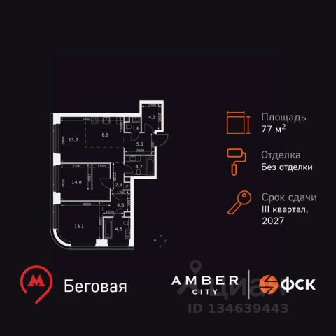 ИПОТЕКА 10% ДЛЯ ВСЕХ БЕЗ НАЦЕНОК! Прямая продажа от застройщика! Жилой Комплекс премиум-класса. Продаётся 2-к квартира номер 1296 общей площадью 45.6 кв.м. на 53-м этаже 57 этажного здания. Без отделки. Цена с учётом скидки. Особенности квартиры: - Мастер-зона с санузлом и гардеробной. Всё для вашего комфорта и удобства, включая личный санузел и гардероб. - Просторная спальня, в которой можно разместить большую кровать. - Линейная планировка - максимальная функциональность и удобство. - Увеличенная ширина окна/окон - больше света и визуального простора. - Увеличенная высота окна - больше воздуха и света. - Гостевой санузел - комфорт и удобство для ваших гостей. - Ниша под стиральную машину - удобство и экономия пространства. - Евроформат - просторное и удобное жилье с отличной планировкой. - Гибкая планировка - создайте пространство по своему вкусу. - Место для игры/занятия спортом - идеальное пространство для активных детей. - Линейная кухня - функциональность и практичность в одном решении. - Проходная кухня-гостиная - идеальное пространство для общения и готовки. - Гардеробная - удобство для хранения и организации вещей. - Ниша под шкаф - компактное и удобное место для вещей. Информация о комплексе: Amber City - это не просто квартал. Это место, куда ведут все маршруты, где рождается вдохновение работать и творить, где счастлива семья и жизнь кипит 24/7. Модная архитектура, высокотехнологичные решения и самодостаточная инфраструктура приближают Amber City к лучшим районам Гонконга и Нью-Йорка. Потрясающие виды на Москва-Сити и центр позволяют заряжаться их амбициозностью, не подчиняясь суете. Стремящиеся ввысь небоскребы, благоустроенный парк с зонами отдыха для взрослых и детей, а также многочисленные объекты инфраструктуры возводятся в западной части центра Москвы. Транспортная доступность: Квартал отличается исключительной транспортной доступностью: большая часть значимых мест Москвы находится на расстоянии 15-20 минут. Такое расположение позволит полностью погрузиться в деловую и культурную жизнь столицы и тратить на дорогу только необходимый минимум времени. Общественный транспорт: - Станция метро "Беговая" - 5 минут пешком - Станция "Беговая" (МЦД-1) - 5 минут пешком - Ж/д станция Беговая - 12 минут пешком - Остановка "2-й Хорошёвский проезд" - 3 минуты пешком - Станция метро "Звенигородская" (строящаяся) - 10 минут пешком На автомобиле: - Звенигородское шоссе - 3 минуты - TTK - 5 минут - Хорошёвское шоссе - 9 минут - Садовое кольцо - 12 минут - Красная Пресня - 15 минут - Тверская - 20 минут - Серебряный бор - 8 минут - Строгинский затон - 8 минут - Москва-Сити - 10 минут - Кремль - 20 минут - Аэропорт Шереметьево - 40 минут Внутренняя инфраструктура: Умелая работа над ландшафтом позволила правильно зонировать многоуровневое пространство, общей площадью 6 гектаров, открывая разнообразные возможности для резидентов Amber City и их детей. Главной артерией квартала станет собственны Продам квартиру в новостройке на проезде 3-й Хорошевский в Москве.