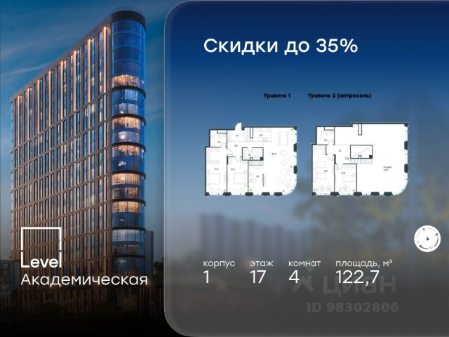 Цена указана с учётом скидки при 100%-й оплате, несубсидированной ипотеке, рассрочке (кроме программы "Рассрочка 0%"). В Академическом районе продаётся 2-комнатная квартира площадью 46.20 кв.м без отделки. Квартира расположена на 18-м этаже 19-этажного жилого комплекса бизнес-класса Level Академическая (компания Level Group). Отличная транспортная доступность: - 1 мин. пешком до станции метро "Академическая"; - 4 мин. на автомобиле до ТТК; - 8 мин. на автомобиле до Садового кольца; - 13 мин. на автомобиле до Кремля. Продуманный архитектурный проект: - современная архитектура от бюро UNK project; - высокие потолки в квартирах до 6,62 м; - окна в пол высотой 2,5-2,68 м с панорамным видом на МГУ, Москва-Сити и другие доминанты Москвы; - квартиры с моллированным остеклением - радиусные окна открывают увеличенный угол обзора; - более 20 вариантов планировочных решений; - уникальные квартиры с собственным патио и возможностью обустройства дровяного камина; - квартиры сдаются без отделки, что открывает свободу для создания интерьера по своему вкусу. Расположение: Камерный проект из 1 корпуса расположен тихом зеленом районе Москвы, в непосредственной близости к центру города. В округе построено 80 детских садов, 50 школ и 30 вузов, 7 из которых входят в топ100 вузов России: МГУ, МГИМО, РАНХиГС, МИСИС, РУДН, РЭУ им. Плеханова и РГУ нефти и газа им. Губкина. Этот район буквально утопает в зелени парков, начиная с уютного Академического в 6 минутах пешком и заканчивая одним из крупнейших в городе парком 50-летия Октября (12 минут на автомобиле). Общая площадь природных объектов в радиусе 2-6 км от дома - 476,5 га. Внутренняя инфраструктура: На территории Level Академическая откроется собственный торговый центр, а для отдыха жителей будут созданы общественные пространства: комфортное лобби с дизайнерской отделкой, окнами в пол и потолками высотой 4,5 м, а также две благоустроенные зоны - территория по периметру здания и пространство на стилобате. Во дворе на стилобате предусмотрены детская и спортивная площадки, коворкинг и лаунж-зона на открытом воздухе. Стилобат украсят скульптуры животных - жирафа, зайца и волка, которые станут ярким акцентом внутреннего двора Level Академическая, подчеркивая близость к музею Дарвина. Процент озеленения территории - 58%. Технологии и безопасность: Жителей Level Академическая не коснется ежегодное отключение горячей воды благодаря собственным центральным водонагревателям. Безопасность гарантирует круглосуточная охрана, безлимитный Wi-Fi, круглосуточное видеонаблюдение. Удобное перемещение внутри комплекса будут обеспечивать 5 лифтов с доступом в паркинг с жилых этажей. Продам квартиру в новостройке в районе Академический в Москве.