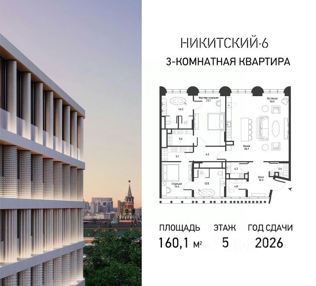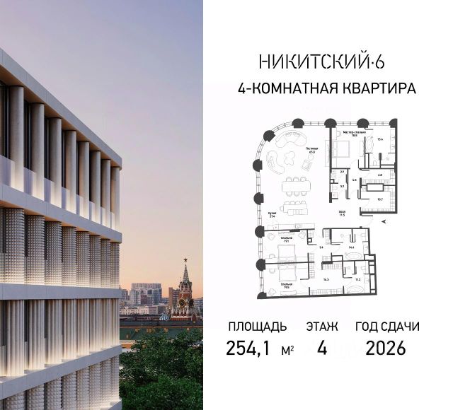 Квартира с 3 мастер-спальнями общей площадью 274,7 м2 расположена на 6-м этаже жилого дома "Никитский 6". Из окон гостиной открывается панорамный вид на тихие Нижний Кисловский и Калашный переулки, Центральный дом журналиста. Планировочное решение включает панорамную кухню-гостиную и 3 мастер-спальни с личной гардеробной и ванной комнатой, а также функциональные сервисные пространства. Во всех квартирах предусмотрена высококачественная авторская отделка с кухонной мебелью, бытовой техникой и полностью оборудованными ванными комнатами. В интерьере предложены природные оттенки и натуральные премиальные материалы: дерево, различные породы камня, элементы металла. Интеграция ультрасовременных инженерных систем с элементами управления smart home и multiroom. "Никитский 6" расположен в одном из культовых районов столицы — на Арбате, на пересечении Никитского бульвара и улицы Воздвиженка. В пешей доступности от дома находятся всемирно известные культурные достопримечательности, образовательные учреждения, зеленые бульвары для прогулок, модные рестораны и бутики Никитской улицы и всего пять минут до Александровского сада. Для дополнительного комфорта резидентов "Никитский 6" предусмотрена клубная инфраструктура: просторное комфортабельное лобби, зал для частных занятий йогой и пилатесом, библиотека и комната для переговоров. На трех подземных уровнях дома расположен просторный паркинг с увеличенными габаритами машино-мест, скоростными зарядками для электромобилей, кладовыми и сервисными помещениями для персонала. Продам квартиру в новостройке в районе Арбат в Москве.
